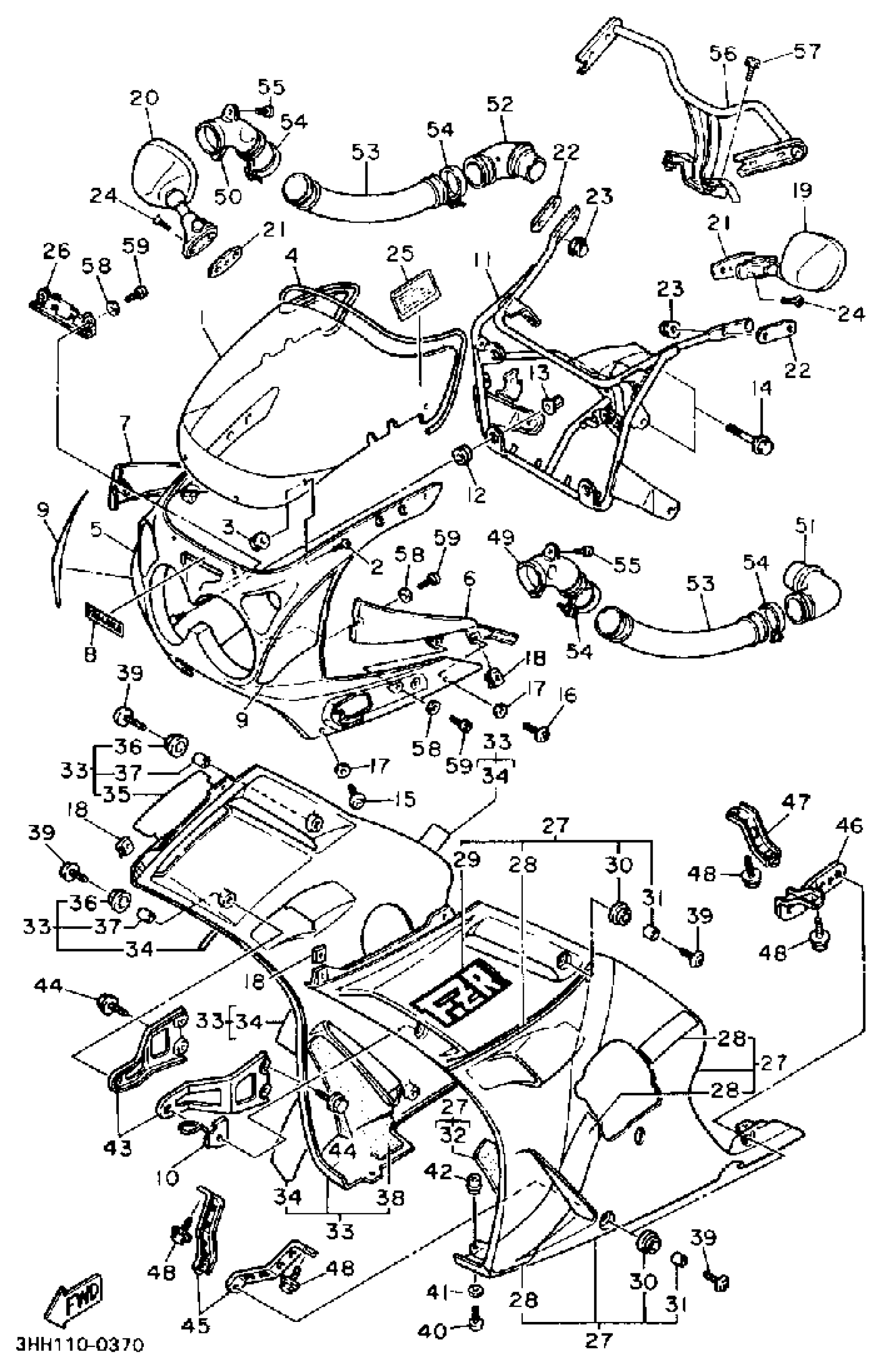 Yamaha FZR600RA (FZR600) 1990 COWLING 1 Diagram