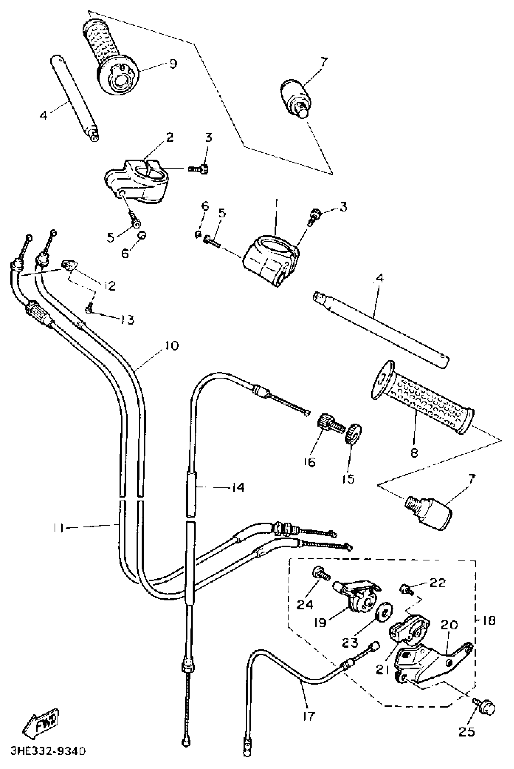 Yamaha FZR600RA (FZR600) 1990 HANDLEBAR CABLE Diagram