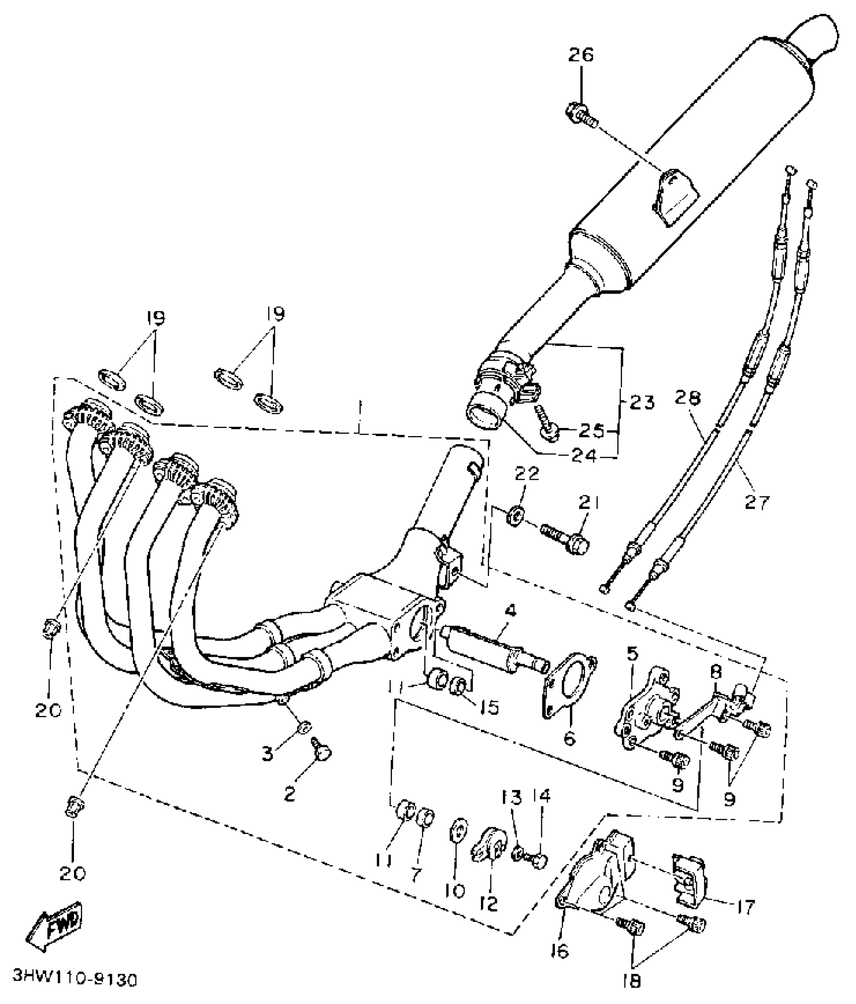 Yamaha FZR600RAC (FZR600 CA) 1990 EXHAUST Diagram