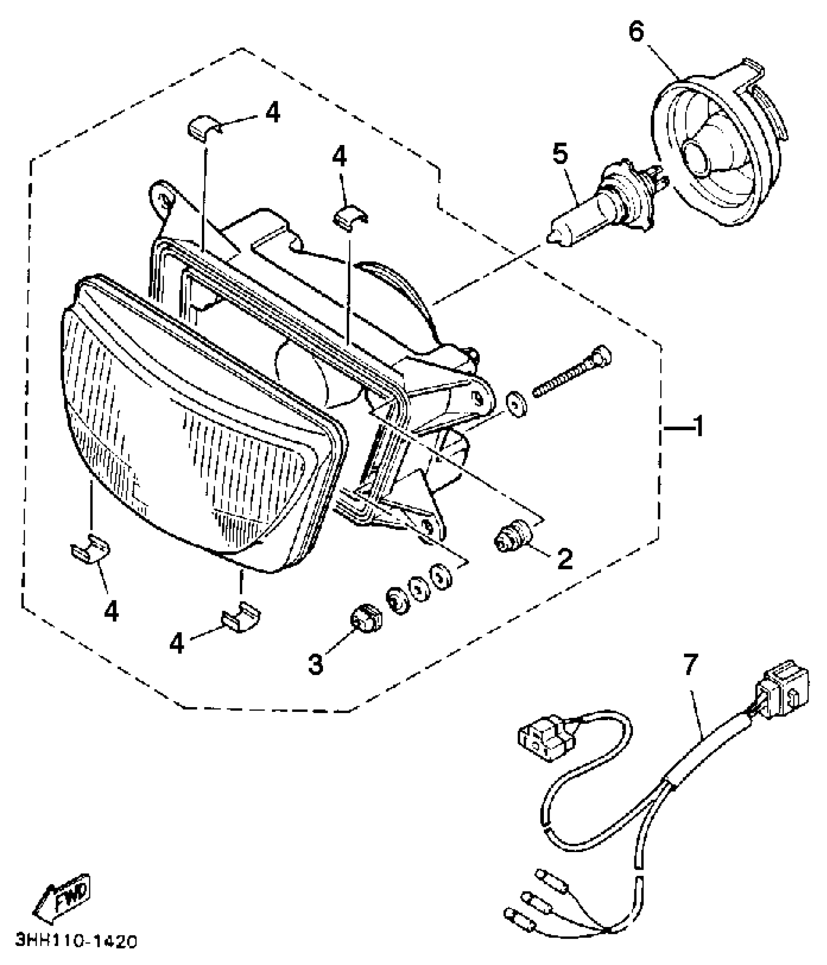 Yamaha FZR600RD (FZR600) 4NA2 1992 HEADLIGHT Diagram