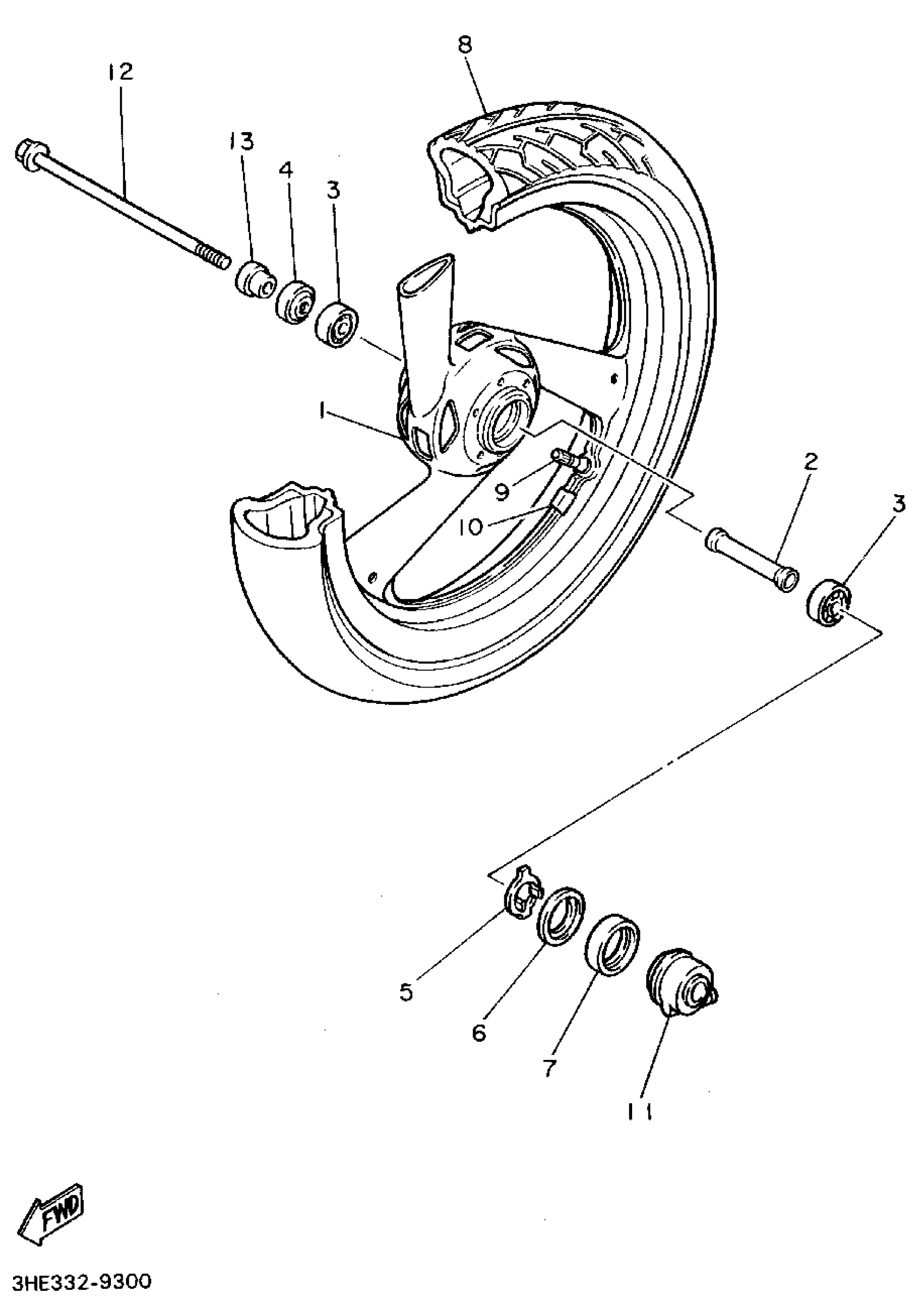 Yamaha FZR600RF (FZR600R) 1994 FRONT WHEEL Diagram