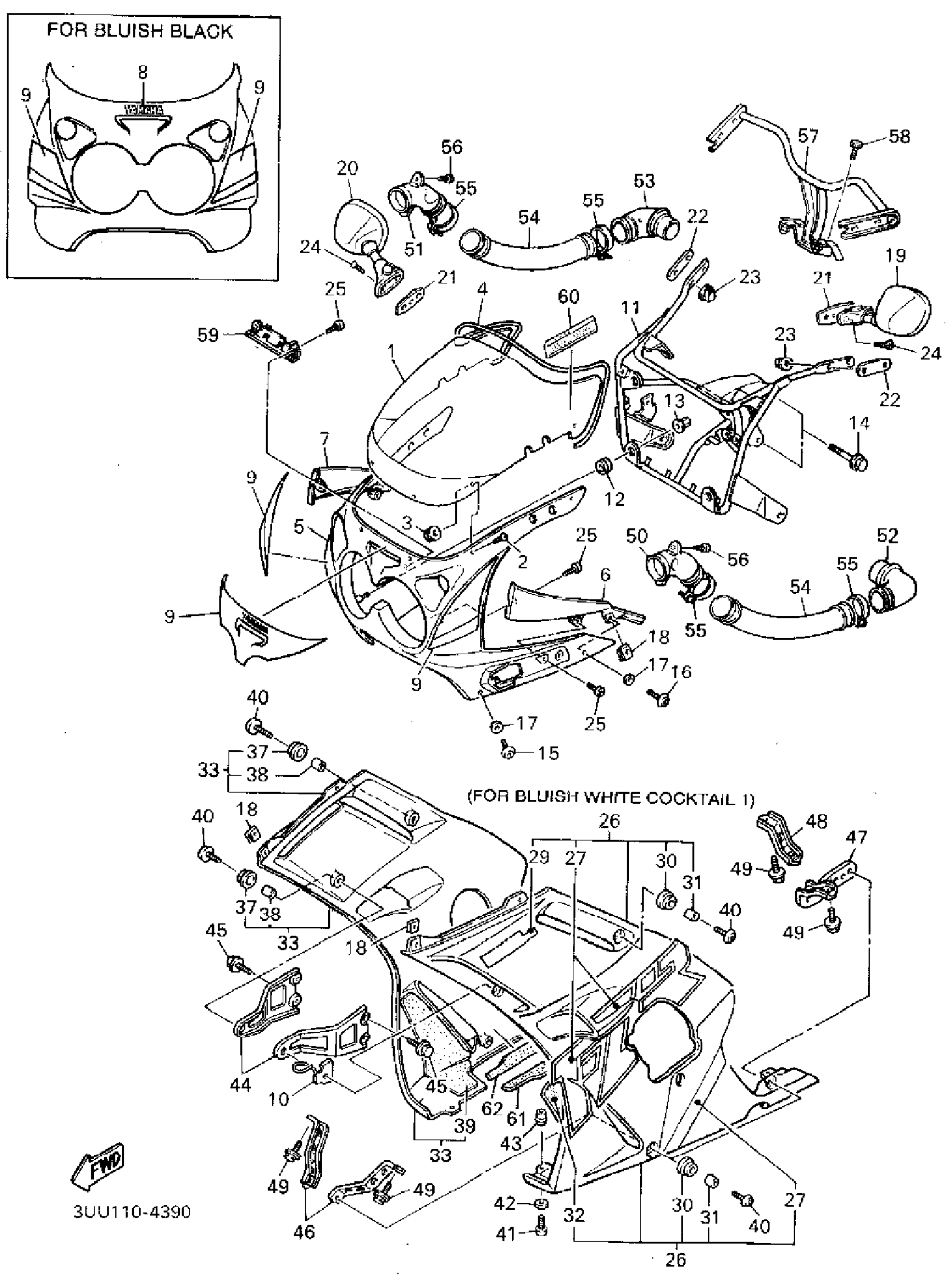 Yamaha FZR600RFC (FZR600R CA) 1994 COWLING 1 Diagram