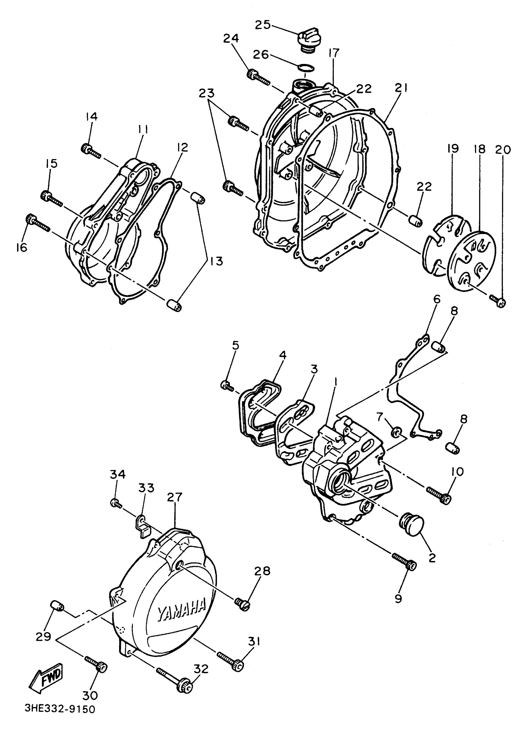 Yamaha FZR600RHC (FZR600R CA) 1996 CRANKCASE COVER 1 Diagram