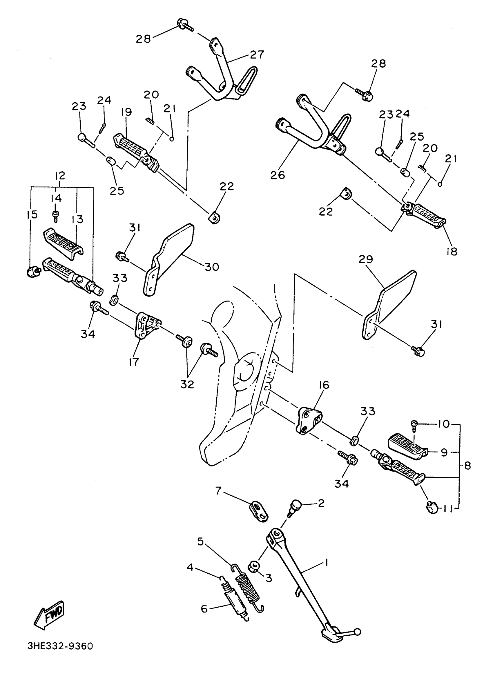 Yamaha FZR600RHC (FZR600R CA) 1996 STAND FOOTREST Diagram