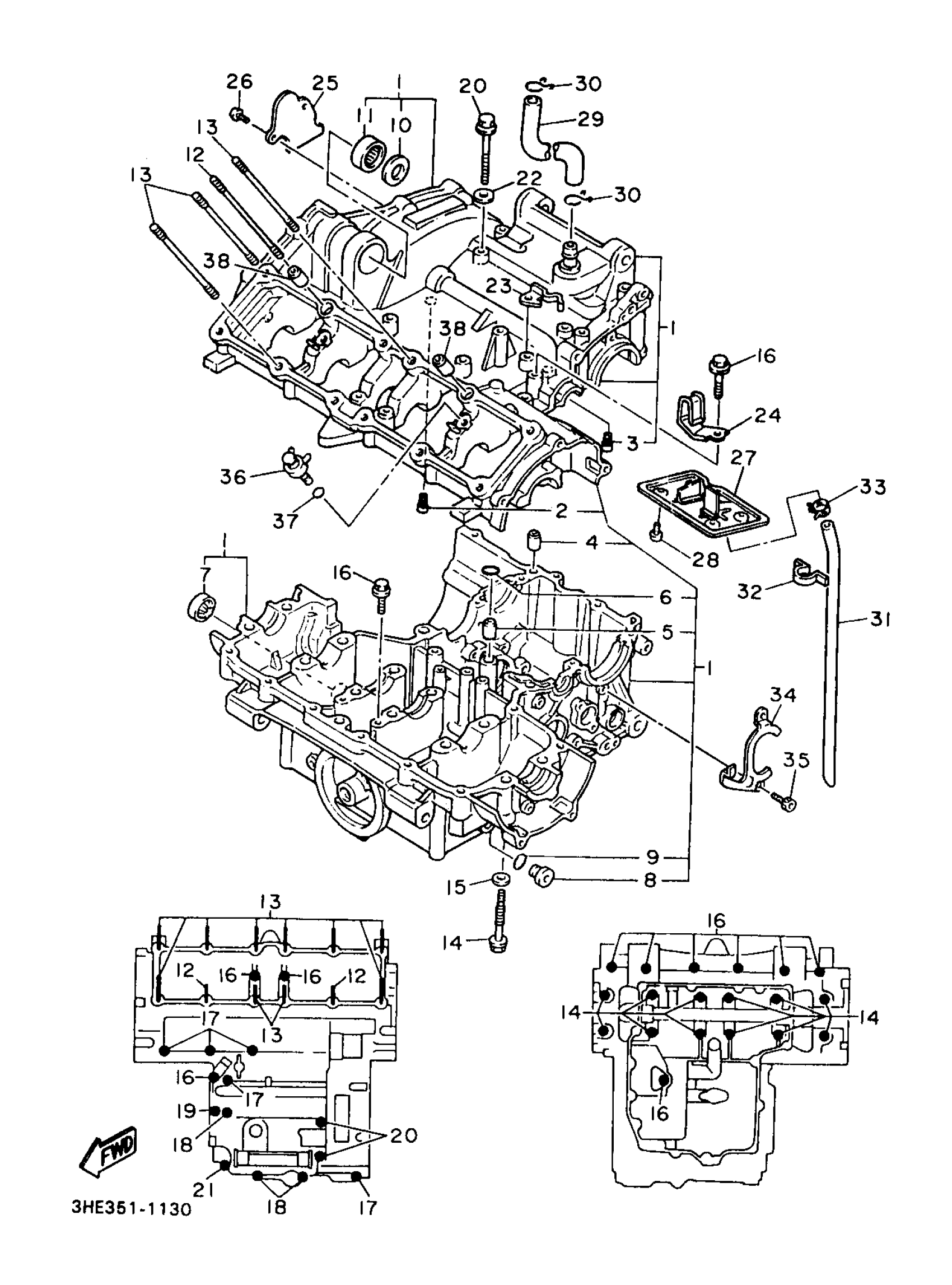 Yamaha FZR600RJC (FZR600R CA) 3UU8 1997 CRANKCASE Diagram