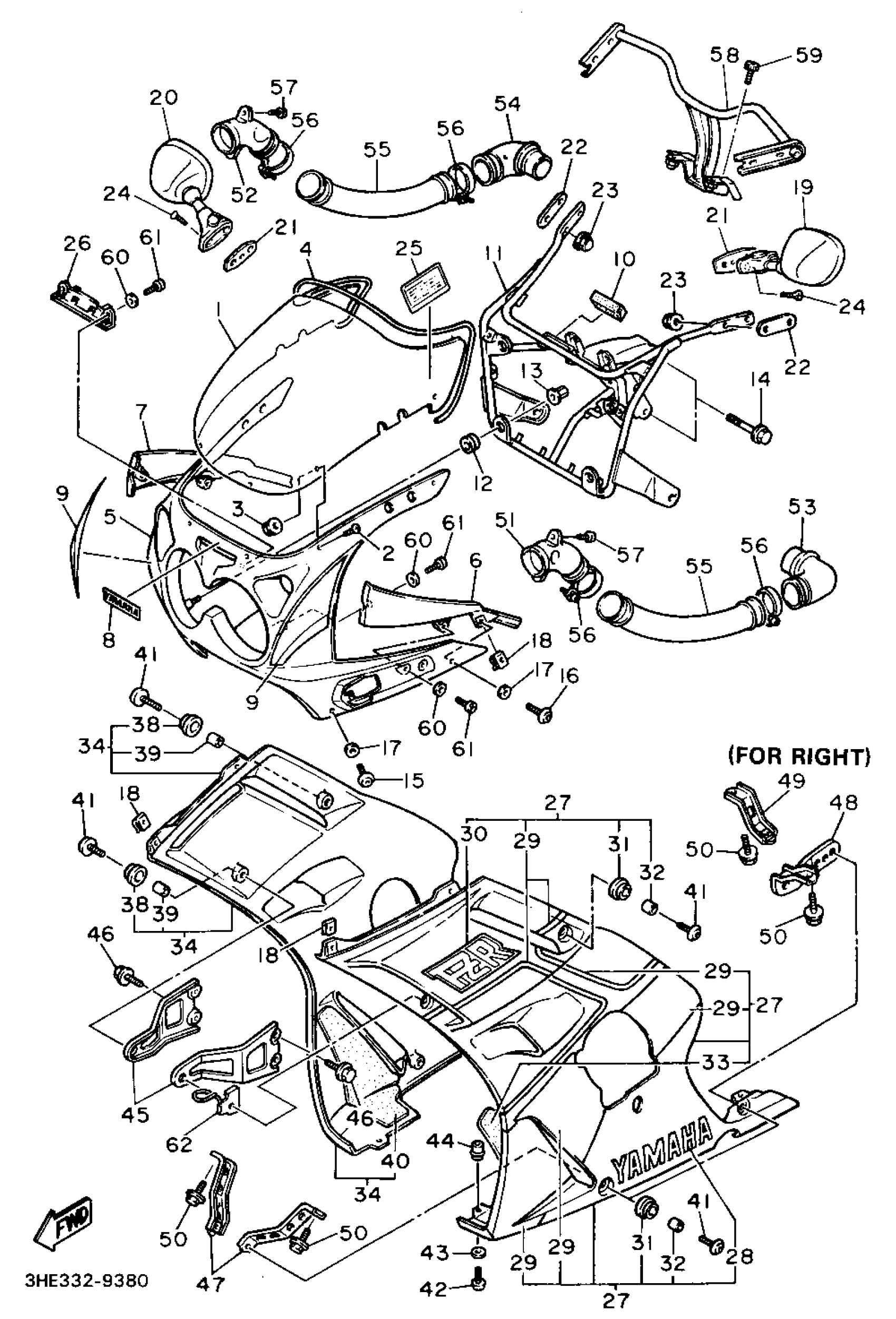 Yamaha FZR600W (FZR600) 1989 FAIRING COWLING Diagram