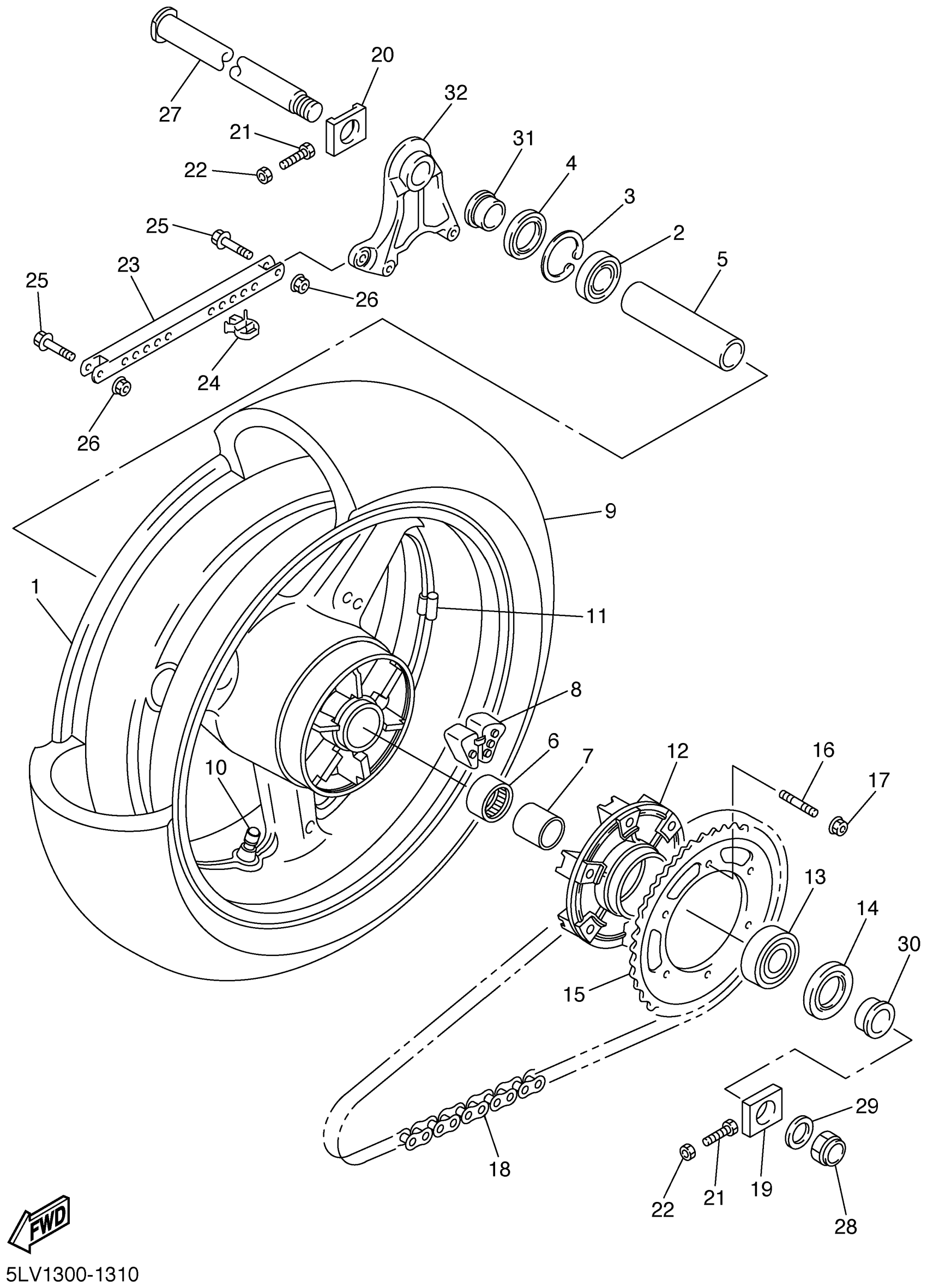 Yamaha FZS1000NC (FZ1 CA) 5LV7 2001 REAR WHEEL Diagram