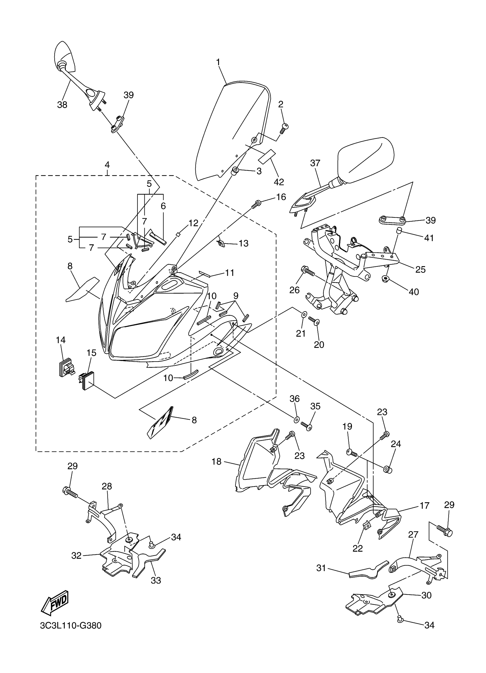 Yamaha FZS10AS (FZ1) 1CAC 2011 COWLING 1 Diagram
