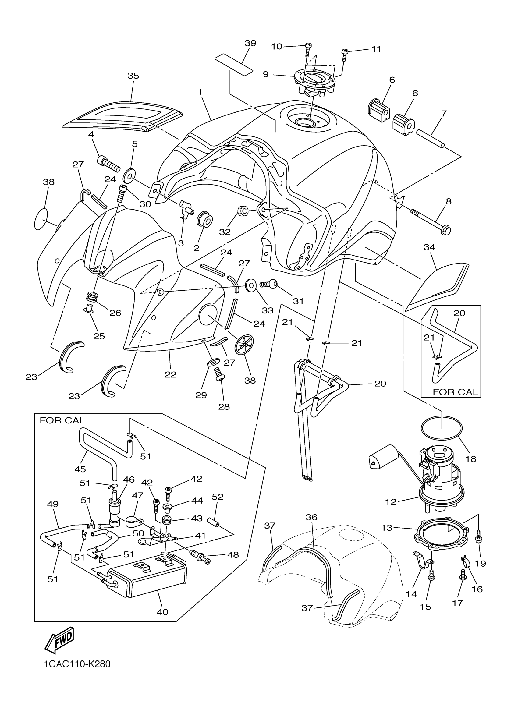 Yamaha FZS10AS (FZ1) 1CAC 2011 FUEL TANK Diagram
