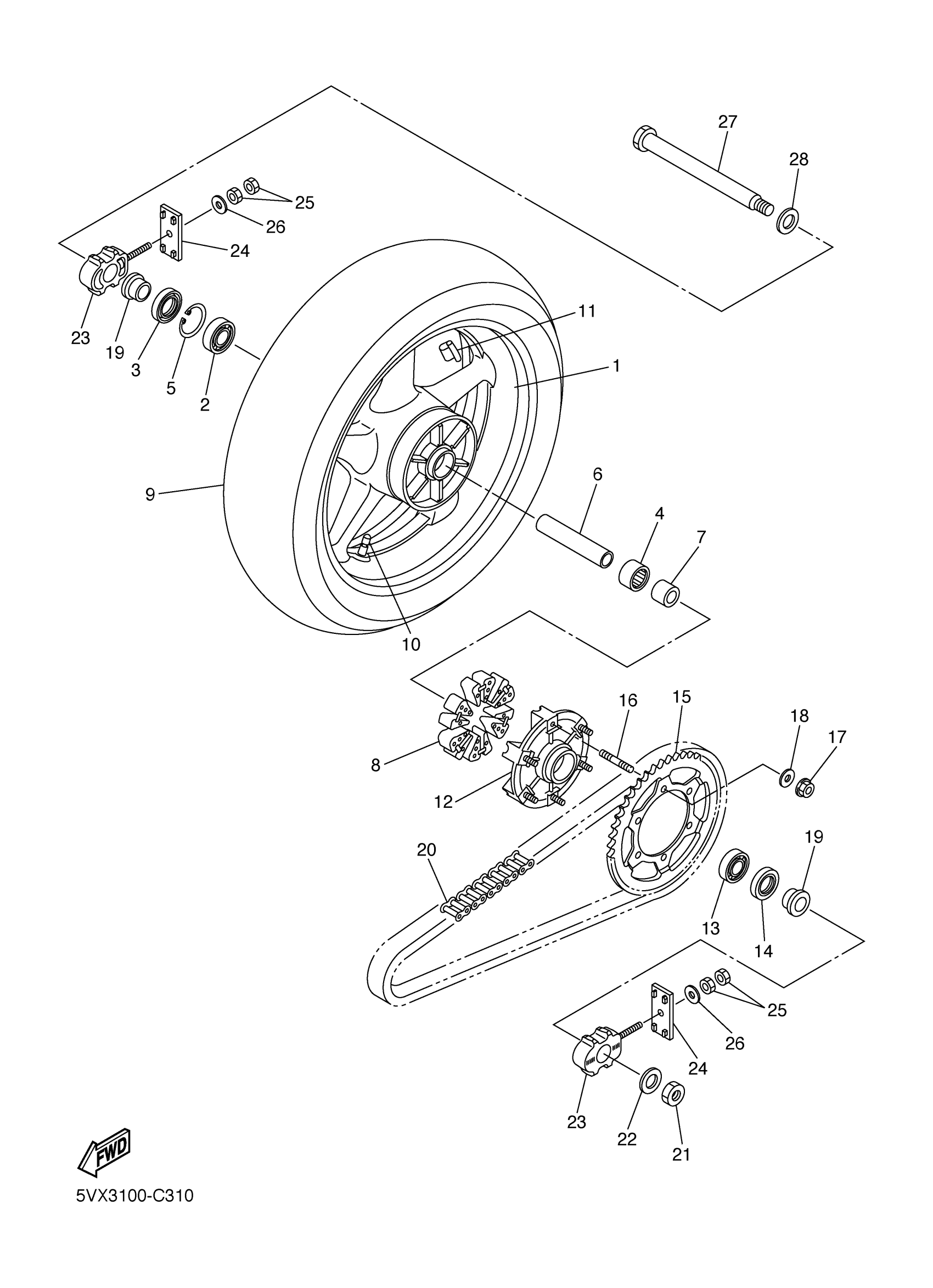 Yamaha FZS6TC (FZ6 CA) 5VX9 2005 REAR WHEEL Diagram