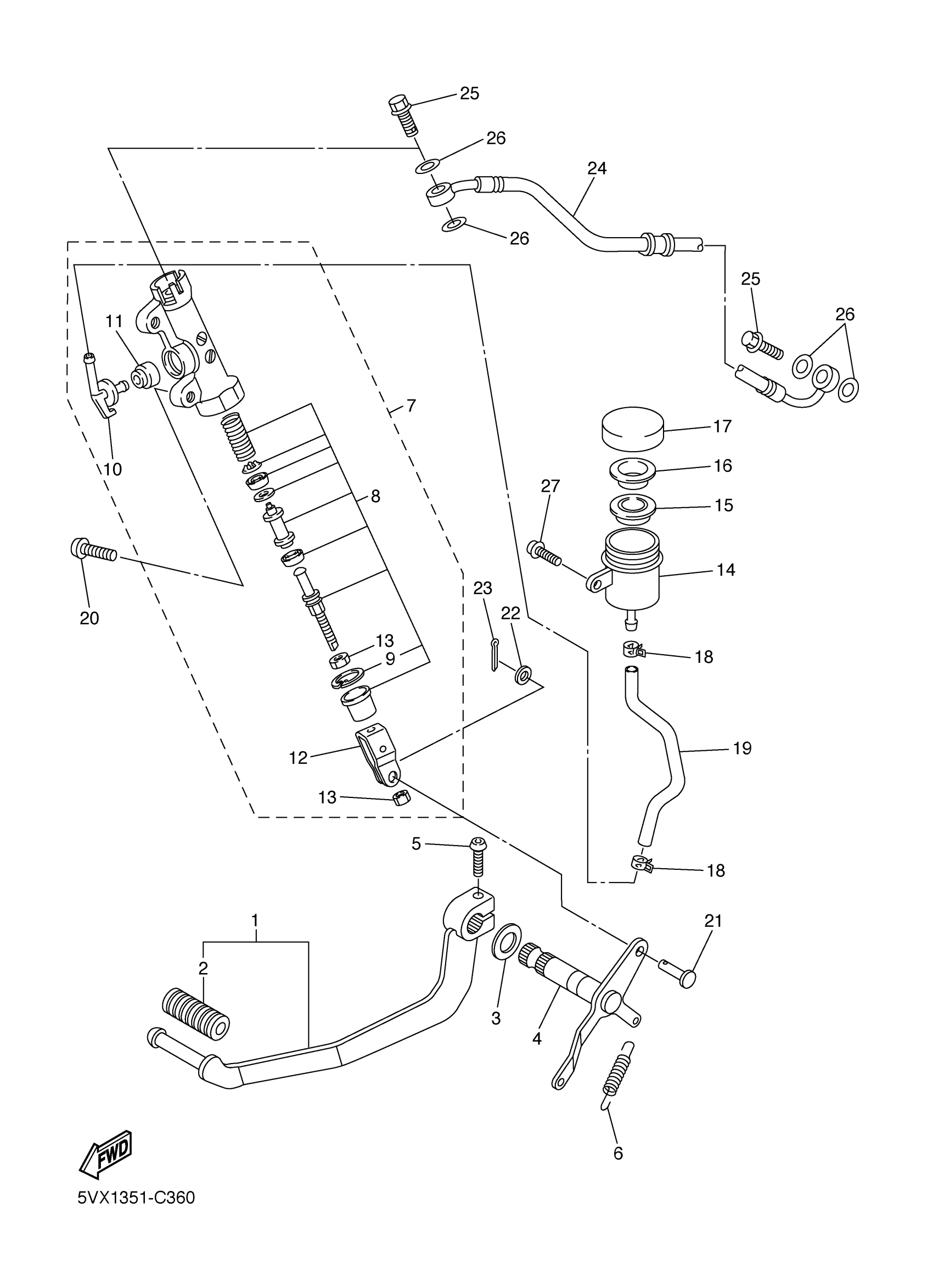 Yamaha FZS6VC (FZ6 CA) 5VXJ 2006 REAR MASTER CYLINDER Diagram