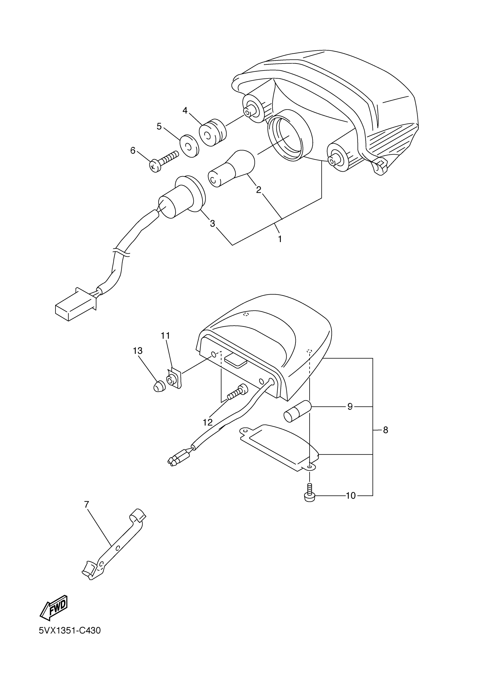 Yamaha FZS6XL (FZ6) 4S880 2008 TAILLIGHT Diagram