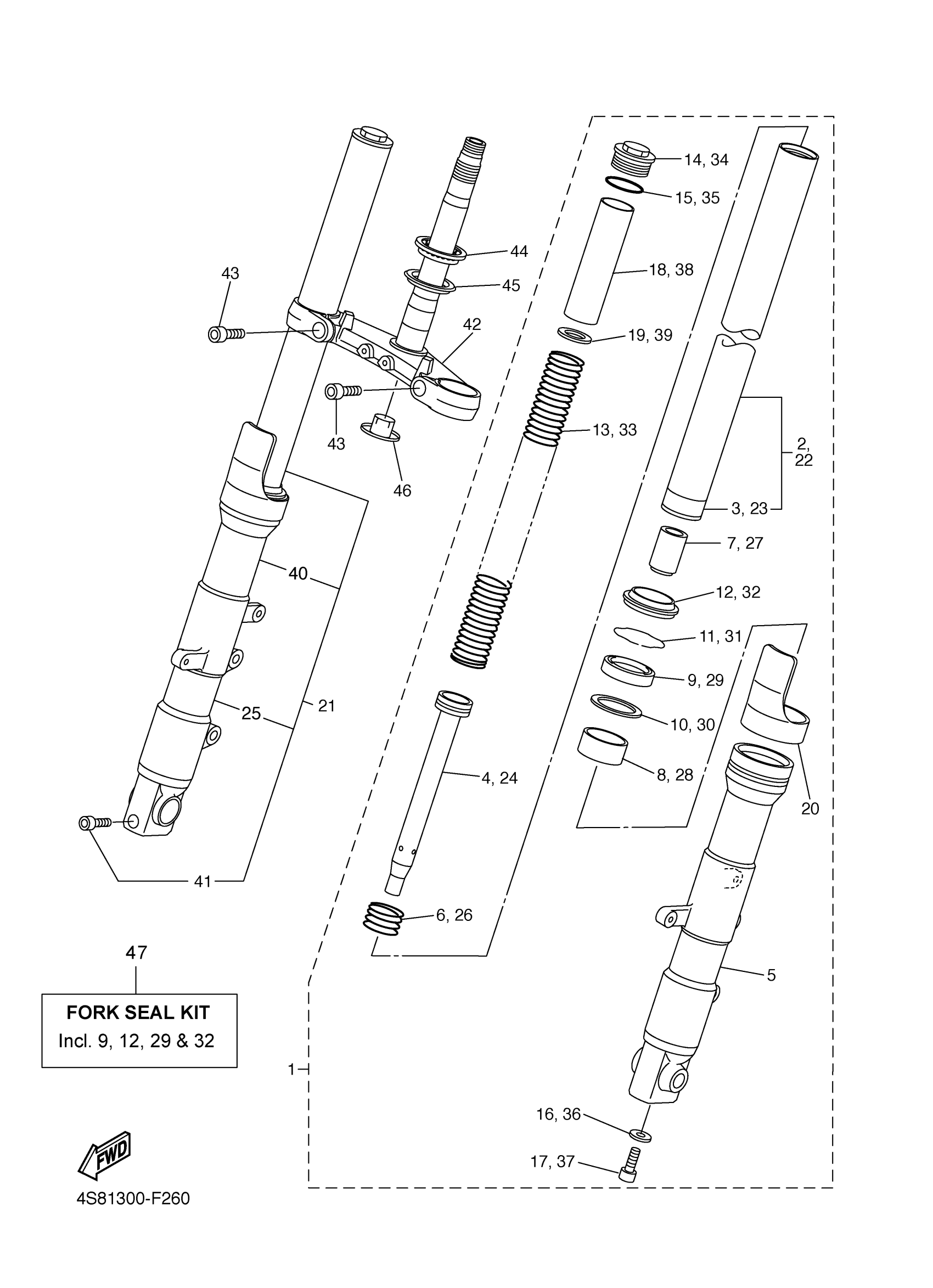 Yamaha FZS6YL (FZ6) 4S8D0 2009 FRONT FORK Diagram