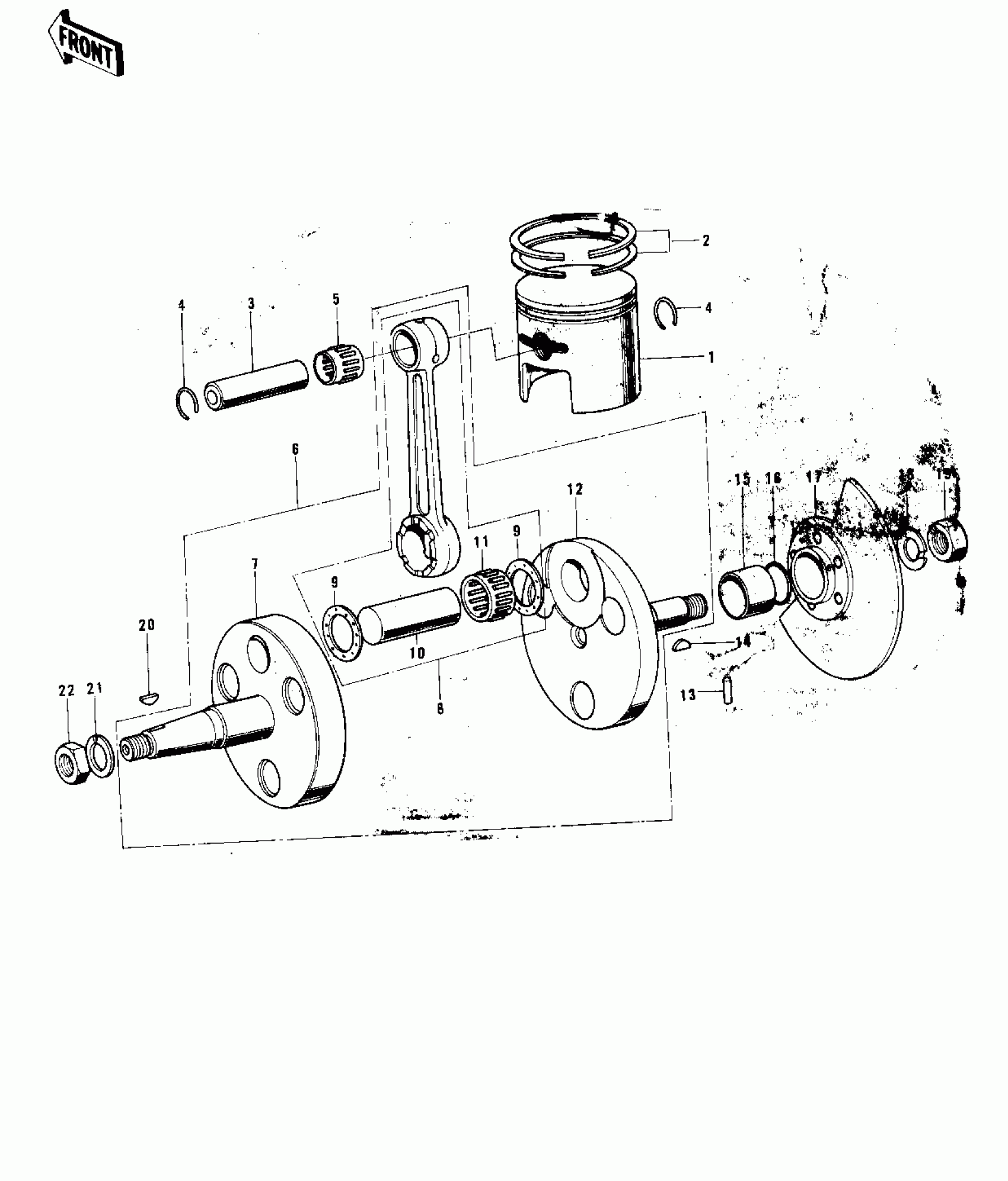 Kawasaki G3SS-D CRANKSHAFT/PISTON/ROTARY VALVE ('74-'75) Diagram