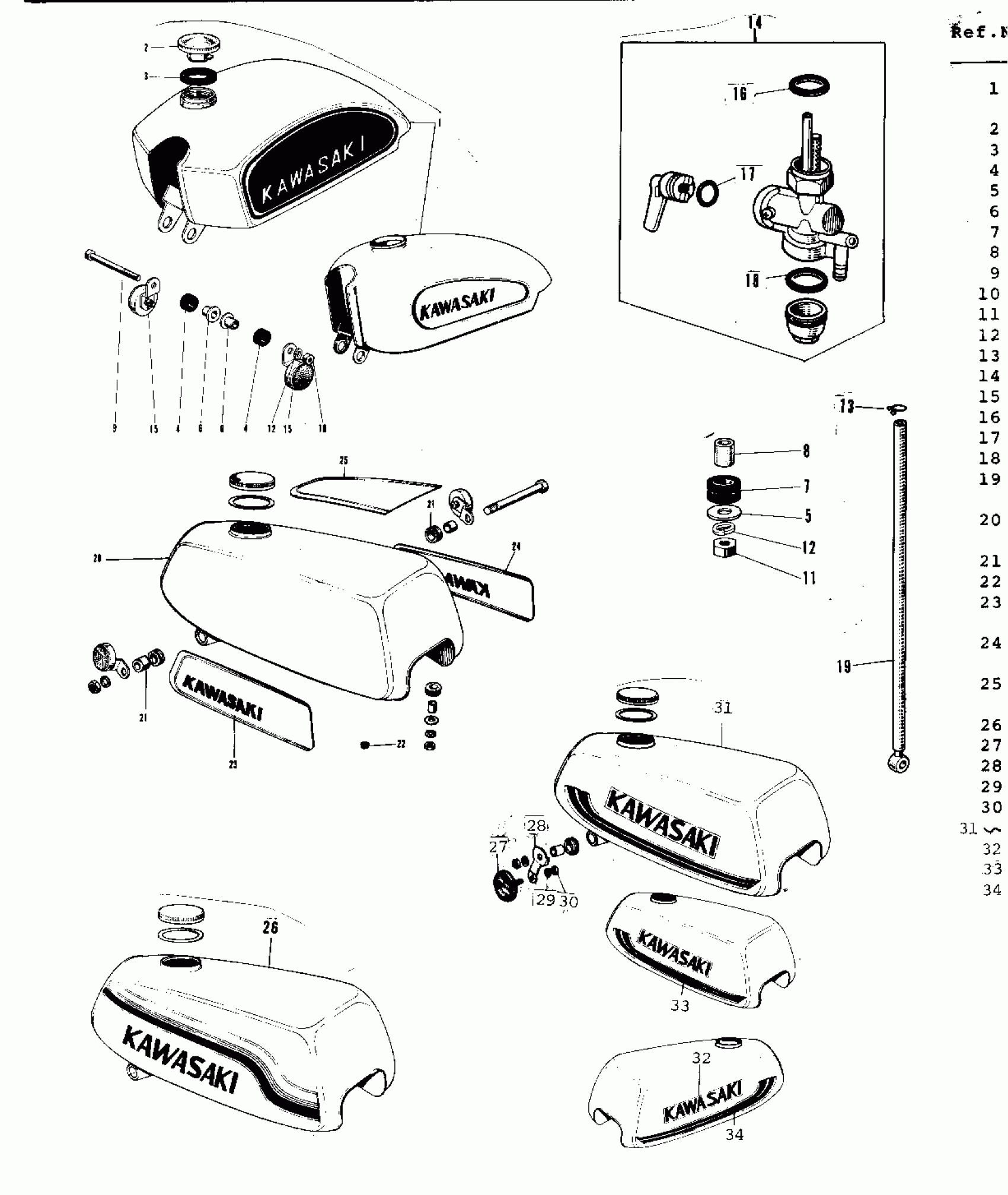Kawasaki G3SS-D FUEL TANK ('69-'73) Diagram