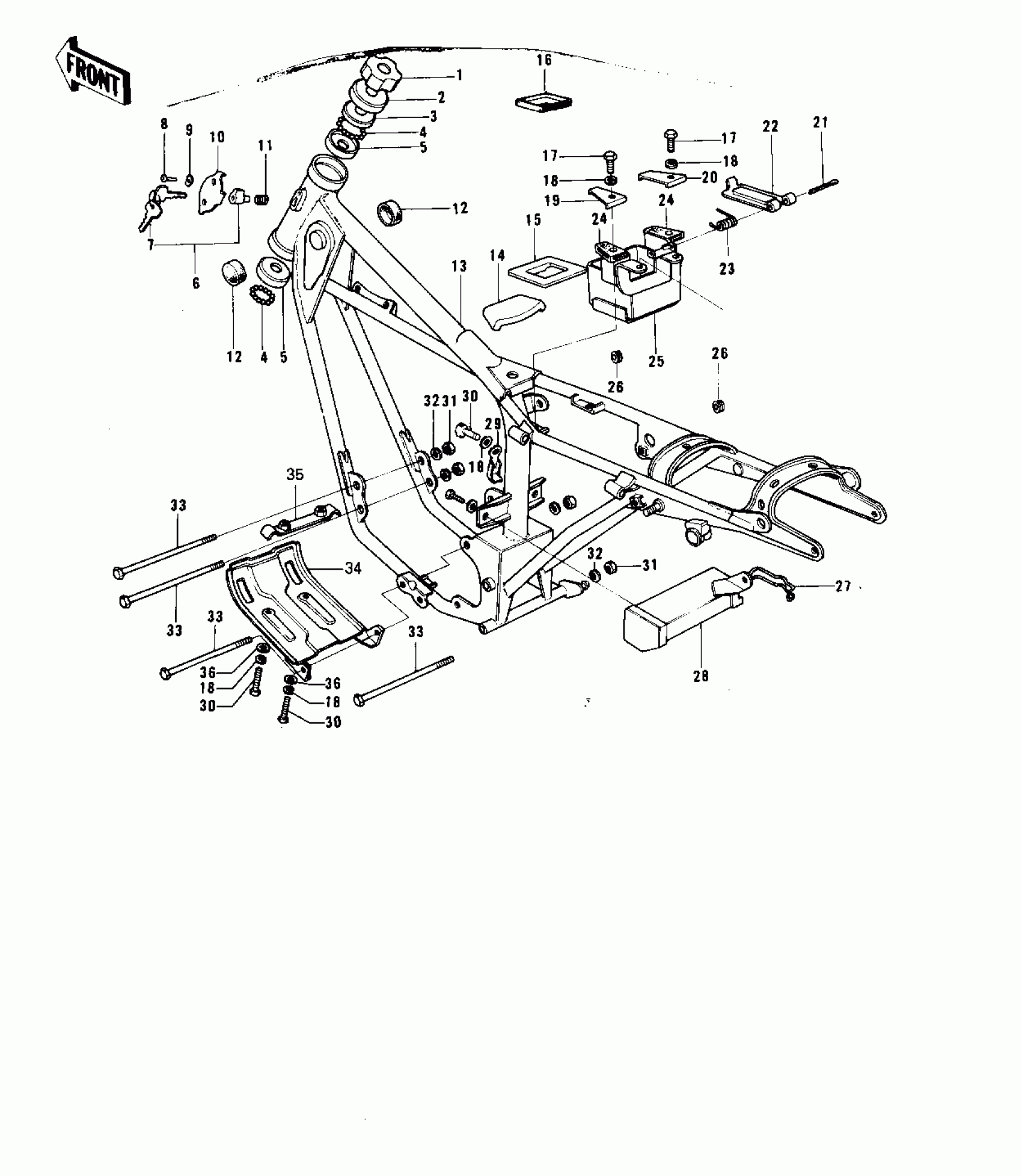 Kawasaki G5-C FRAME/FRAME FITTINGS ('74-'75 B/C) Diagram