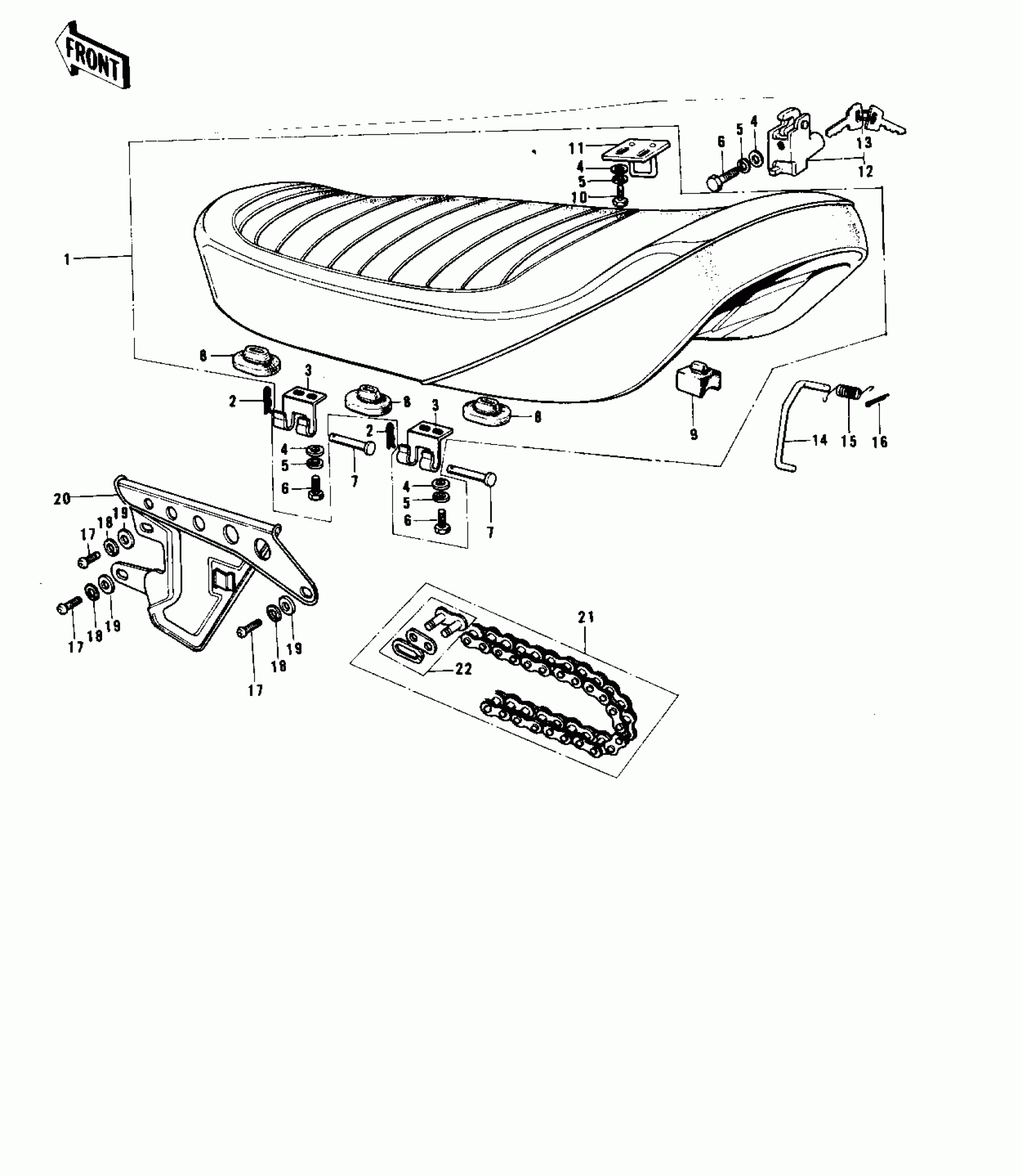 Kawasaki G5-C SEAT/CHAIN COVER/CHAIN ('74-'75 B/C) Diagram