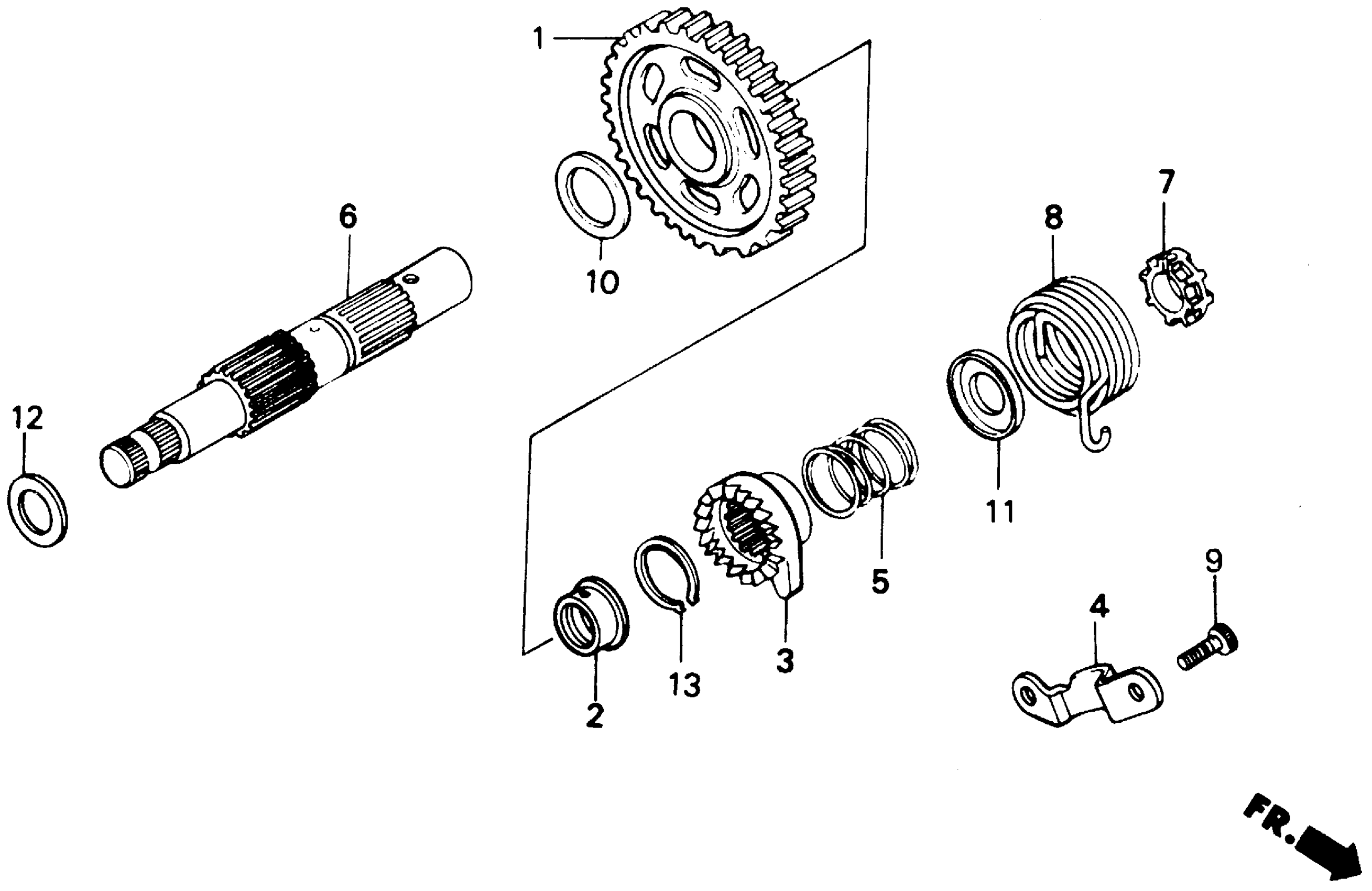 Honda GB500A (90) TOURIST TROPHY, JPN, VIN# JH2PC160-LK100001 KICK STARTER SPINDLE Diagram