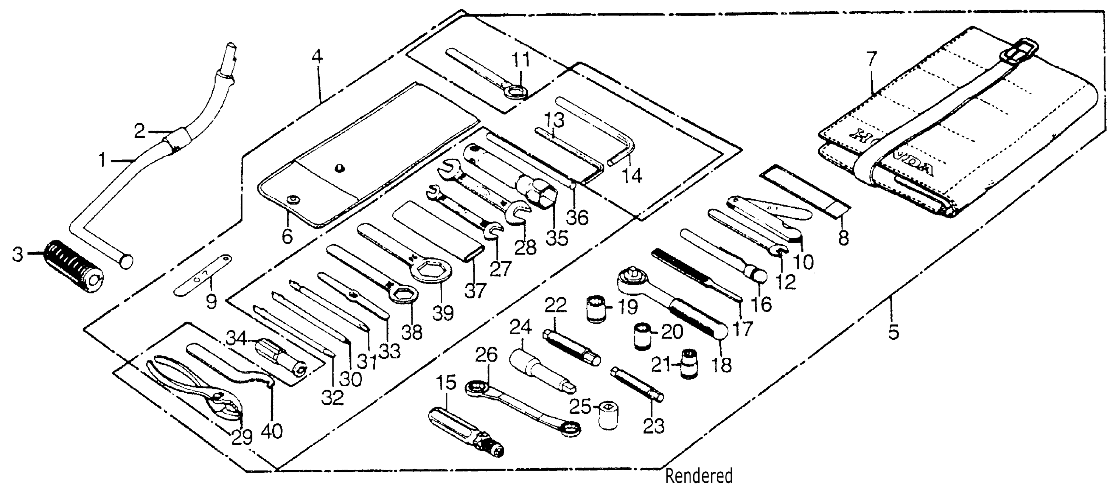Honda GL1000A (77) GOLD WING, JPN, VIN# GL1-3000001 TO GL1-3025175 TOOL SET + KICK STARTER ARM Diagram