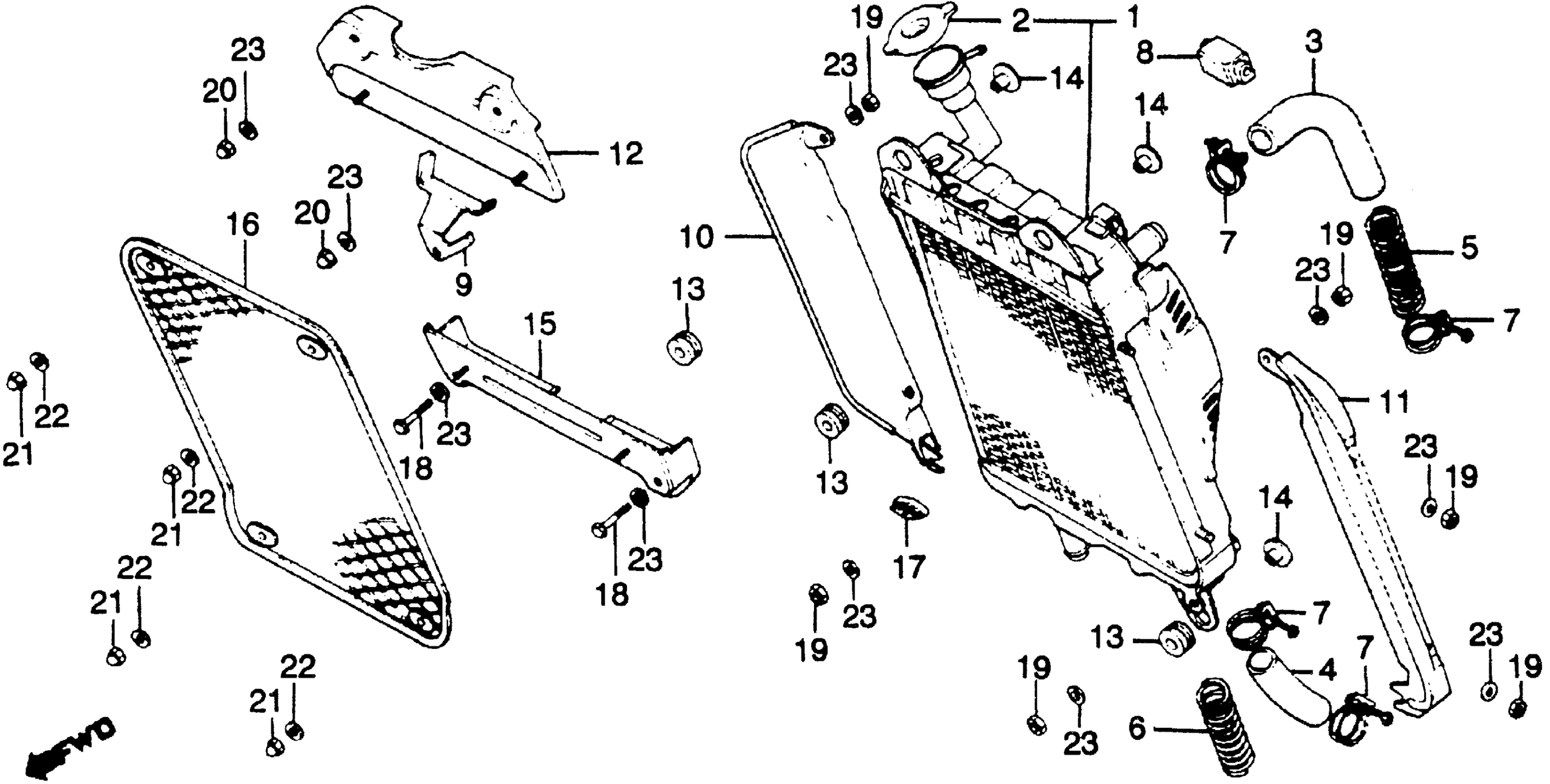 Honda GL1100AA (82) GOLD WING ASPENCADE, USA, VIN# 1HFSC022-CA209501 TO 1HFSC022-CA237741 RADIATOR Diagram