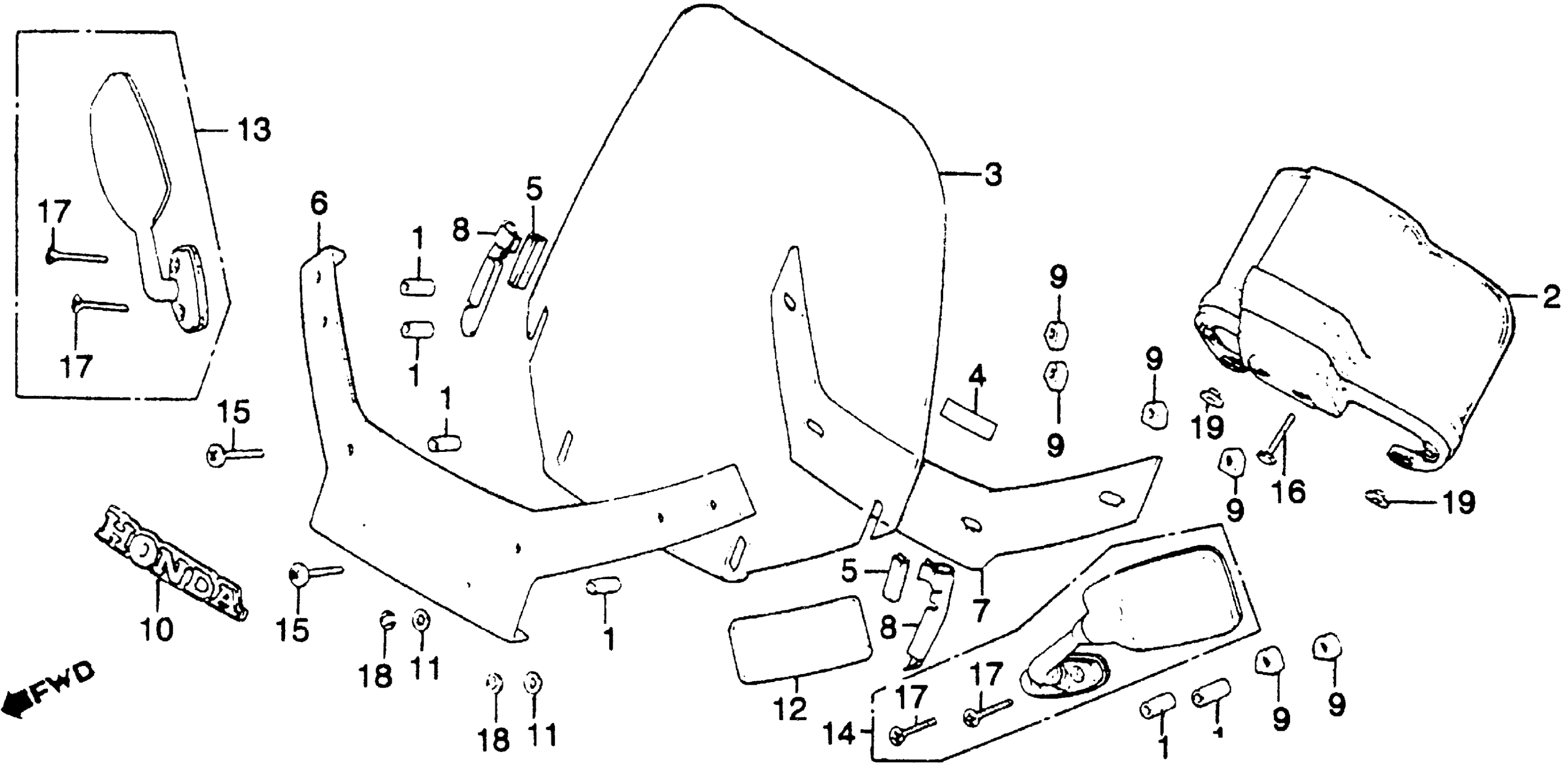Honda GL1100AA (82) GOLD WING ASPENCADE, USA, VIN# 1HFSC022-CA209501 TO 1HFSC022-CA237741 WINDSCREEN Diagram