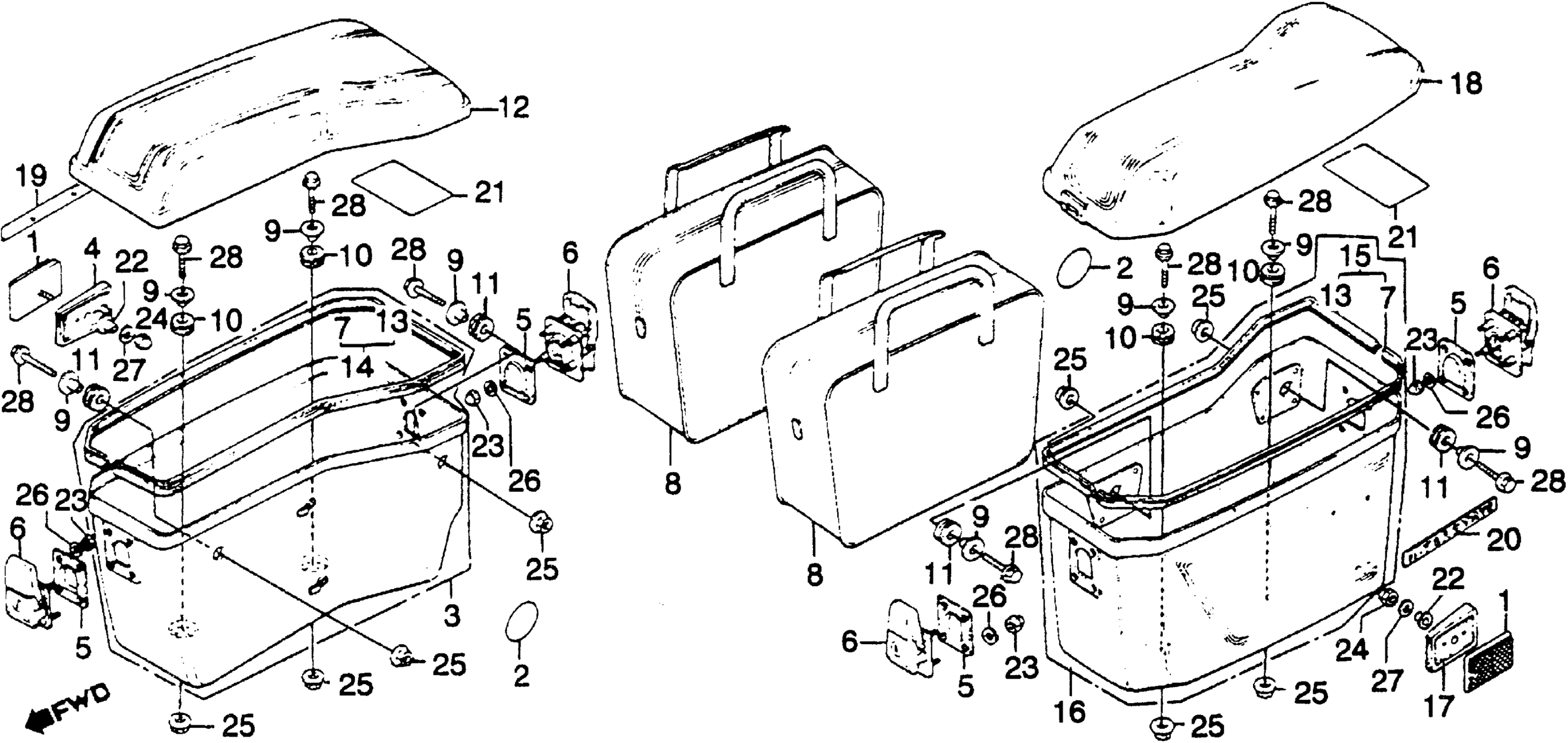 Honda GL1100IA (82) GOLD WING INTERSTATE, USA, VIN# 1HFSC021-CA20010 TO 1HFSC021-CA237630 SADDLEBAG Diagram