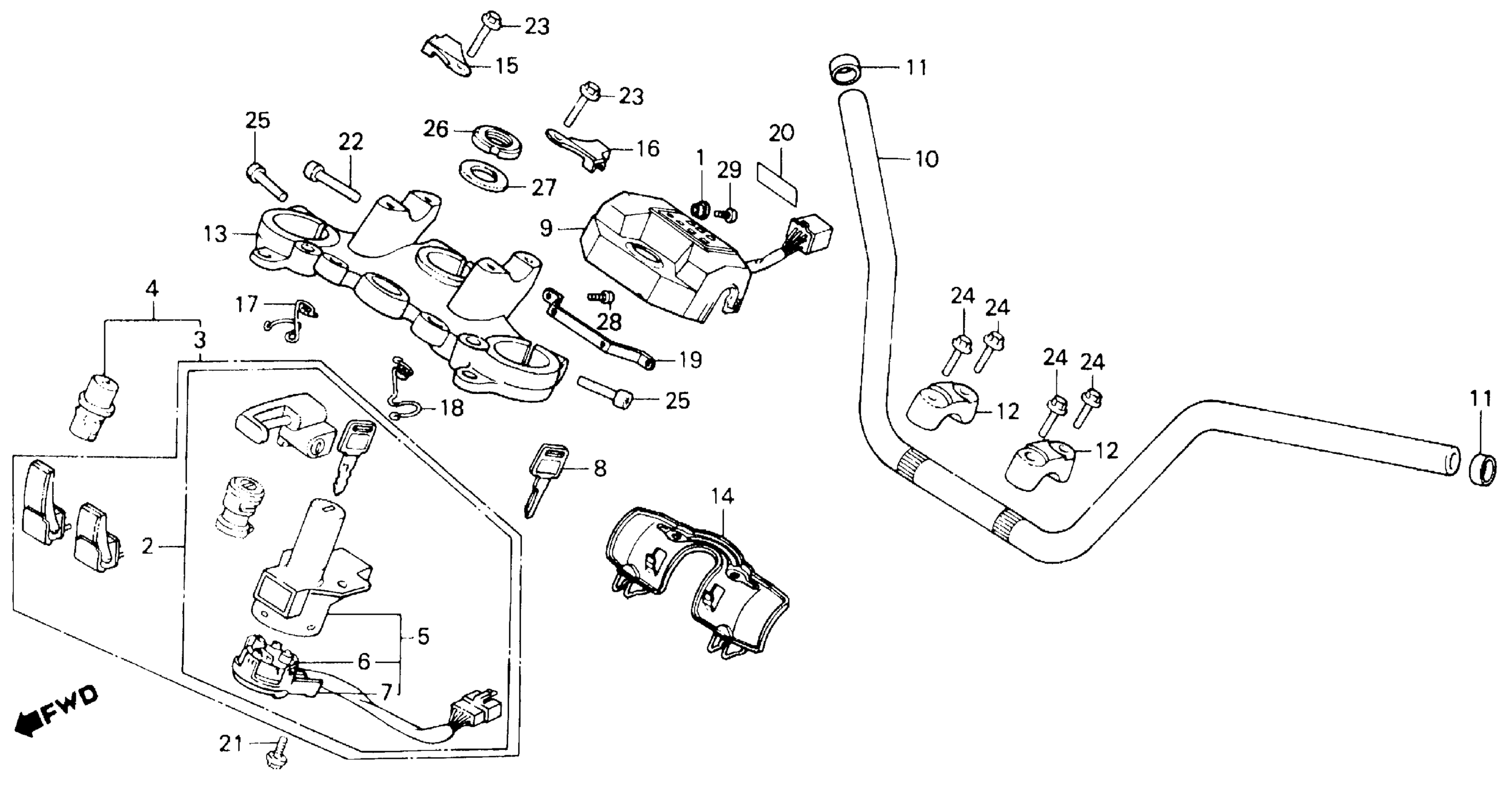 Honda GL1200A (84) GOLD WING, USA, VIN# 1HFSC140-EA000101 TO 1HFSC140-EA022728 1200/A/IHANDLEBAR + KEY SET 84-85 Diagram