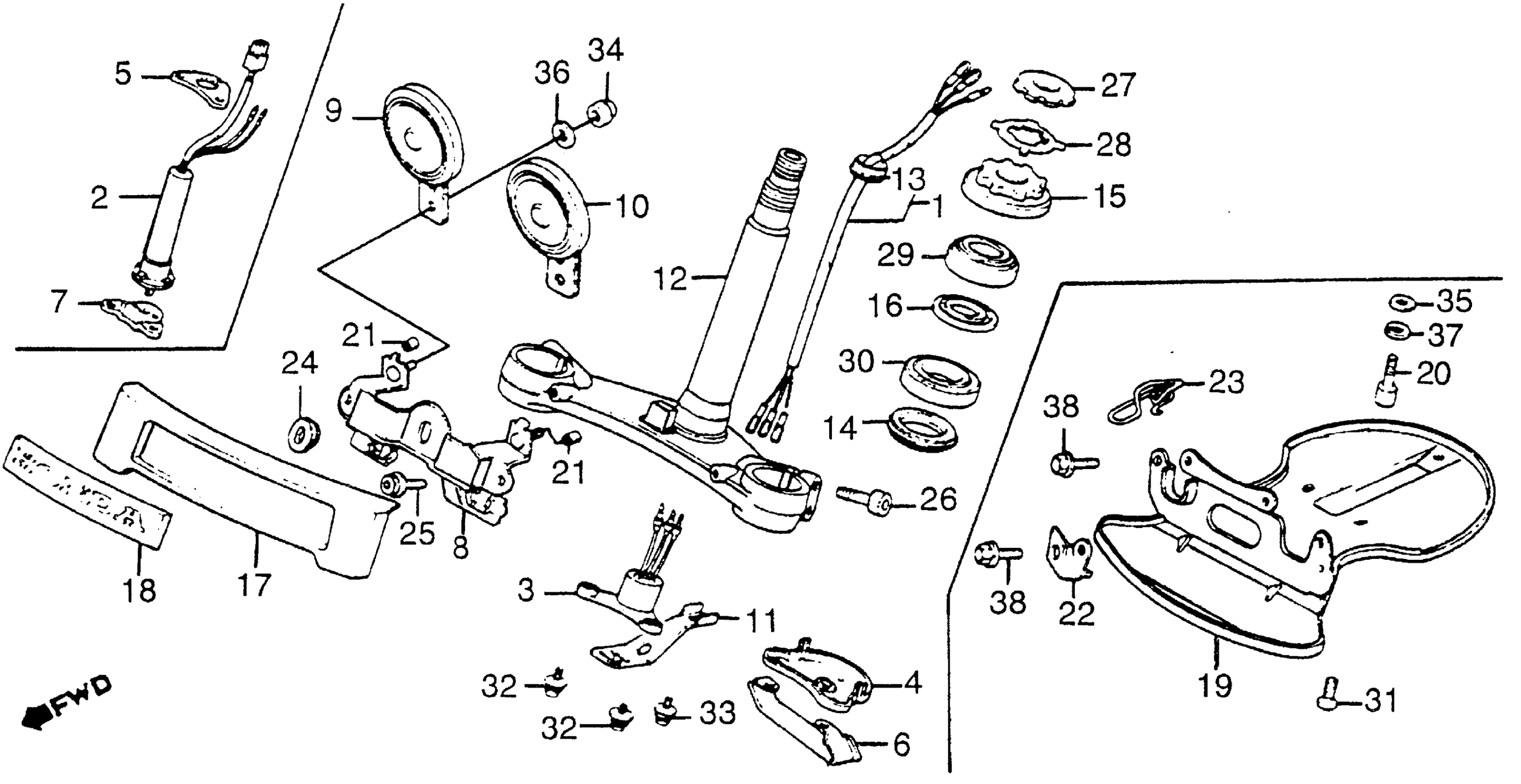 Honda GL1200A (84) GOLD WING, USA, VIN# 1HFSC140-EA000101 TO 1HFSC140-EA022728 STEERING STEM + HORN Diagram