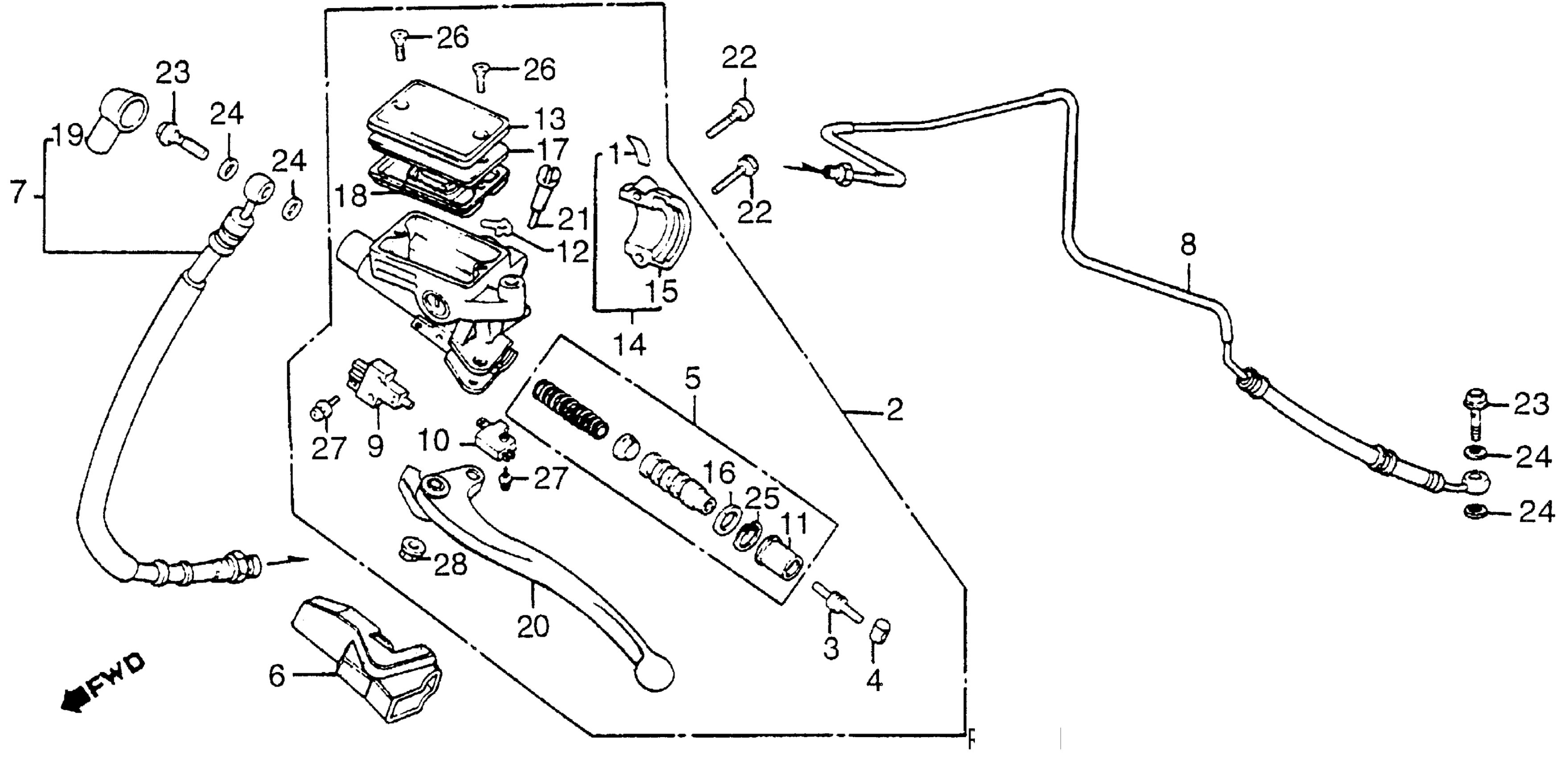 Honda GL1200LA (85) GOLD WING LIMITED EDITION, USA, VIN# 1HFSC146-FA101976 TO 1HFSC146-FA126016 CLUTCH MASTER CYLINDER Diagram