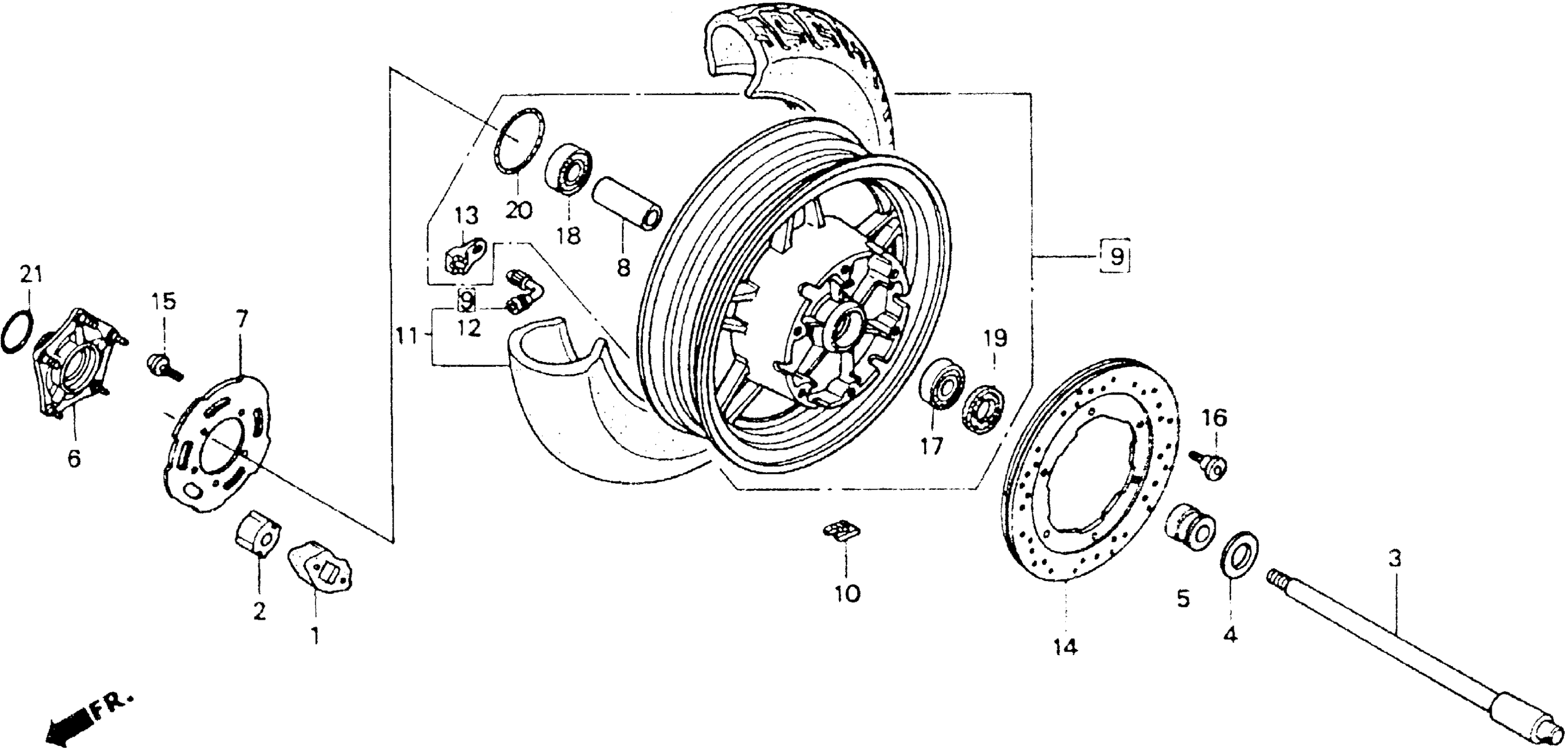 Honda GL1500AA (93) GOLD WING ASPENCADE, USA, VIN# 1HFSC220-PA500001 REAR WHEEL Diagram