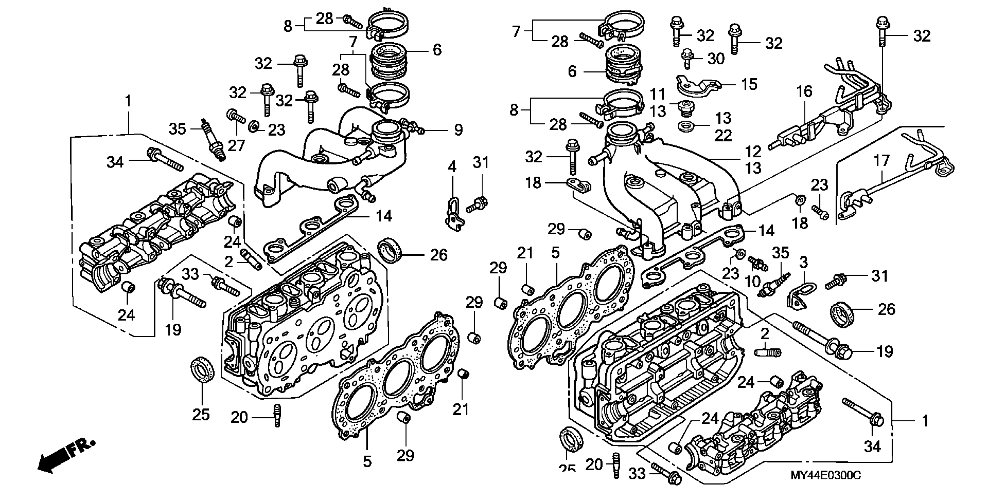 Honda GL1500AAC (93) GOLD WING ASPENCADE, USA, VIN# 1HFSC221-PA500001 CYLINDER HEAD Diagram