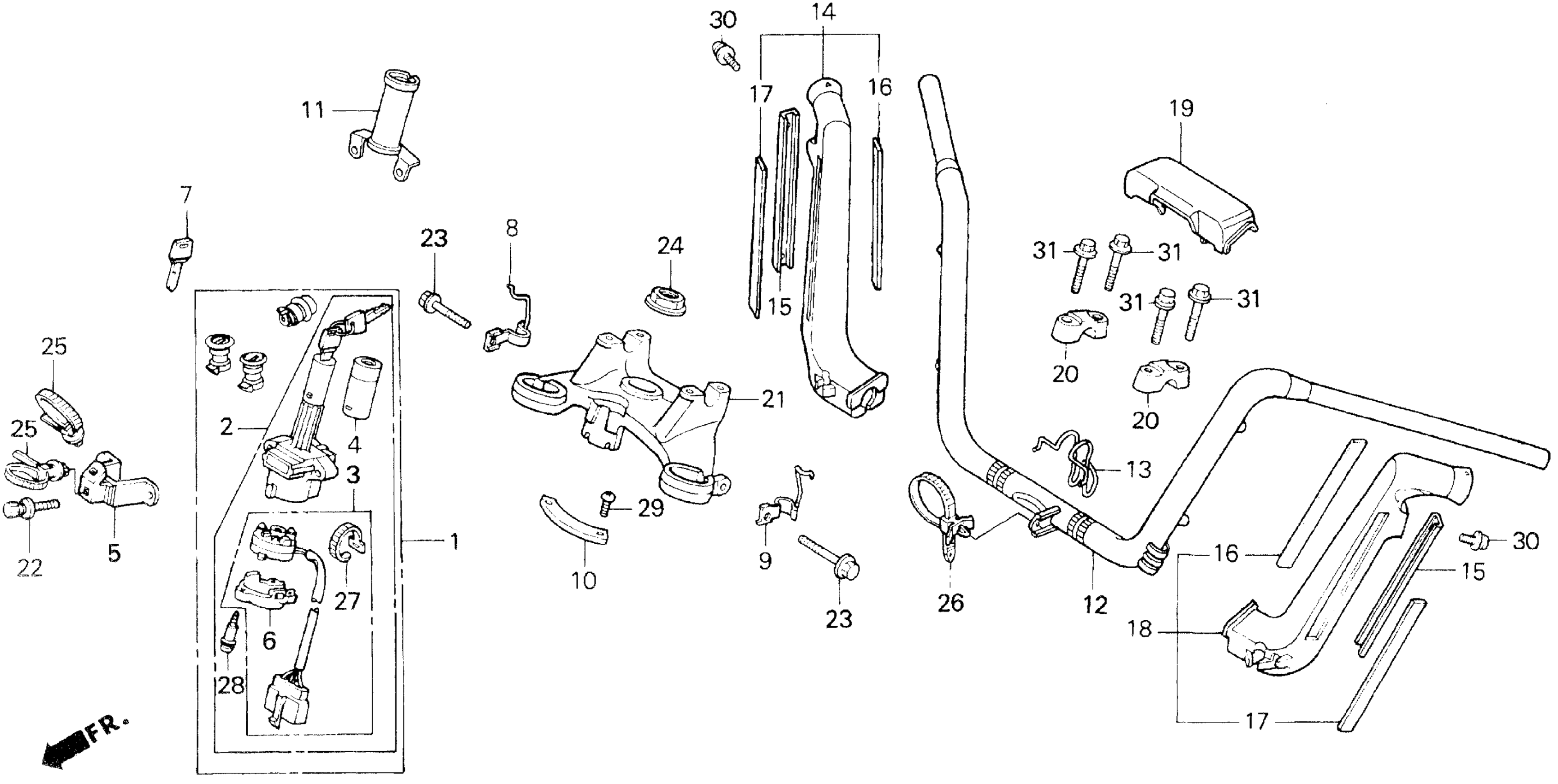 Honda GL1500AAC (99) GOLD WING ASPENCADE, USA, VIN# 1HFSC221-XA100001 HANDLEBAR Diagram