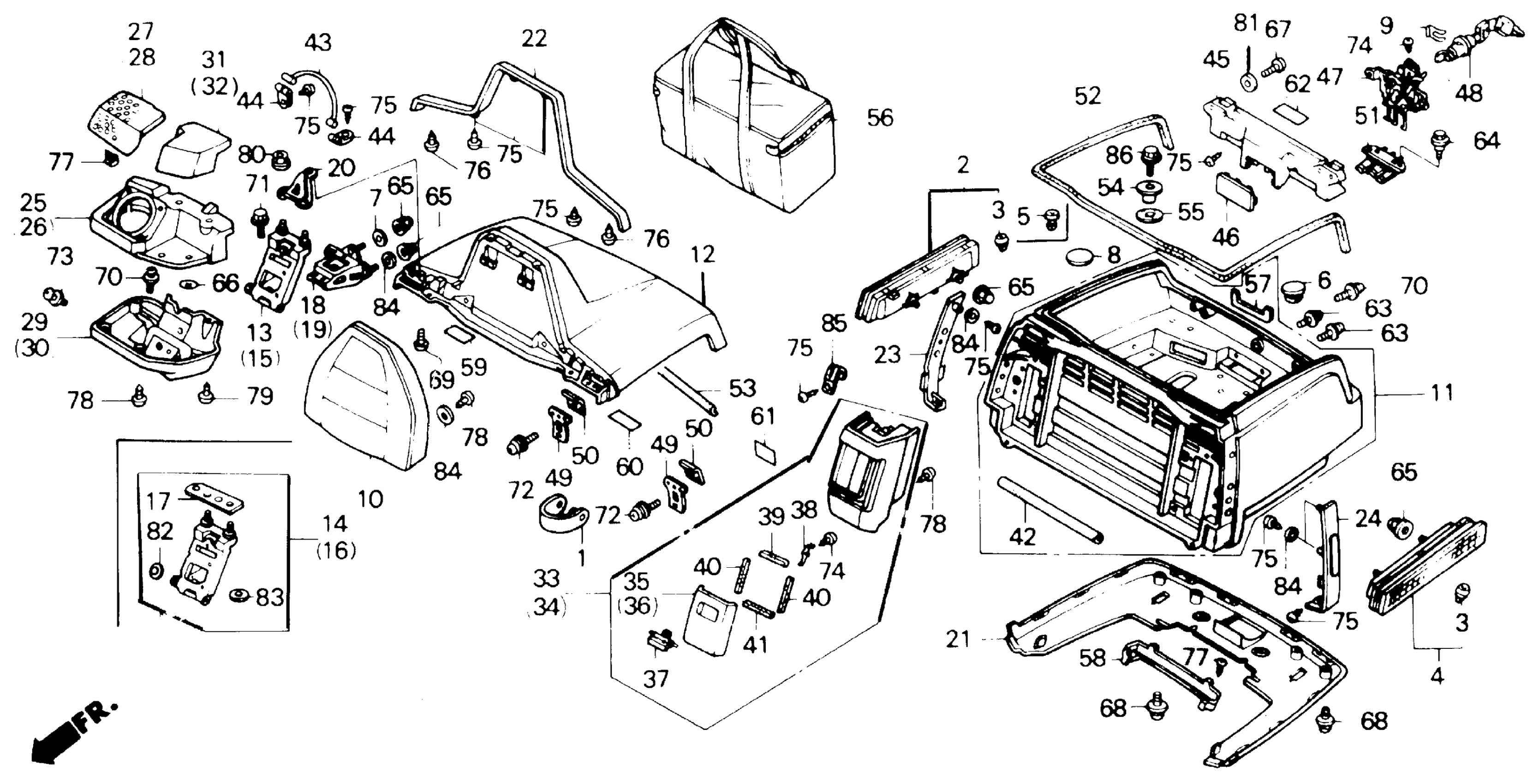 Honda GL1500AC (89) GOLD WING, USA, VIN# 1HFSC221-KA100001 TO 1HFSC221-KA101412 TRUNK BOX Diagram