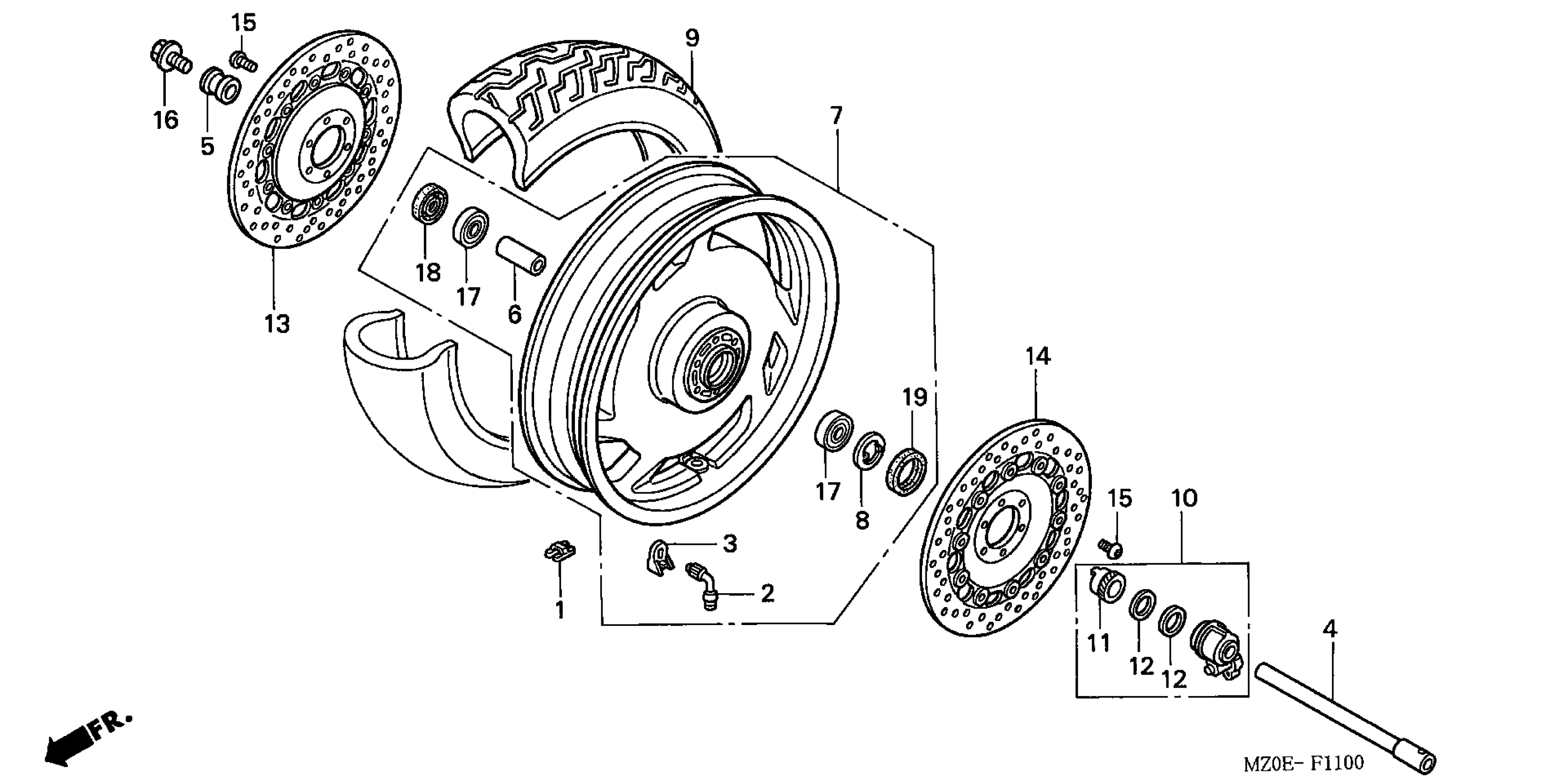Honda GL1500CDA (02) VALKYRIE, USA, VIN# 1HFSC346-2A500001 FRONT WHEEL Diagram