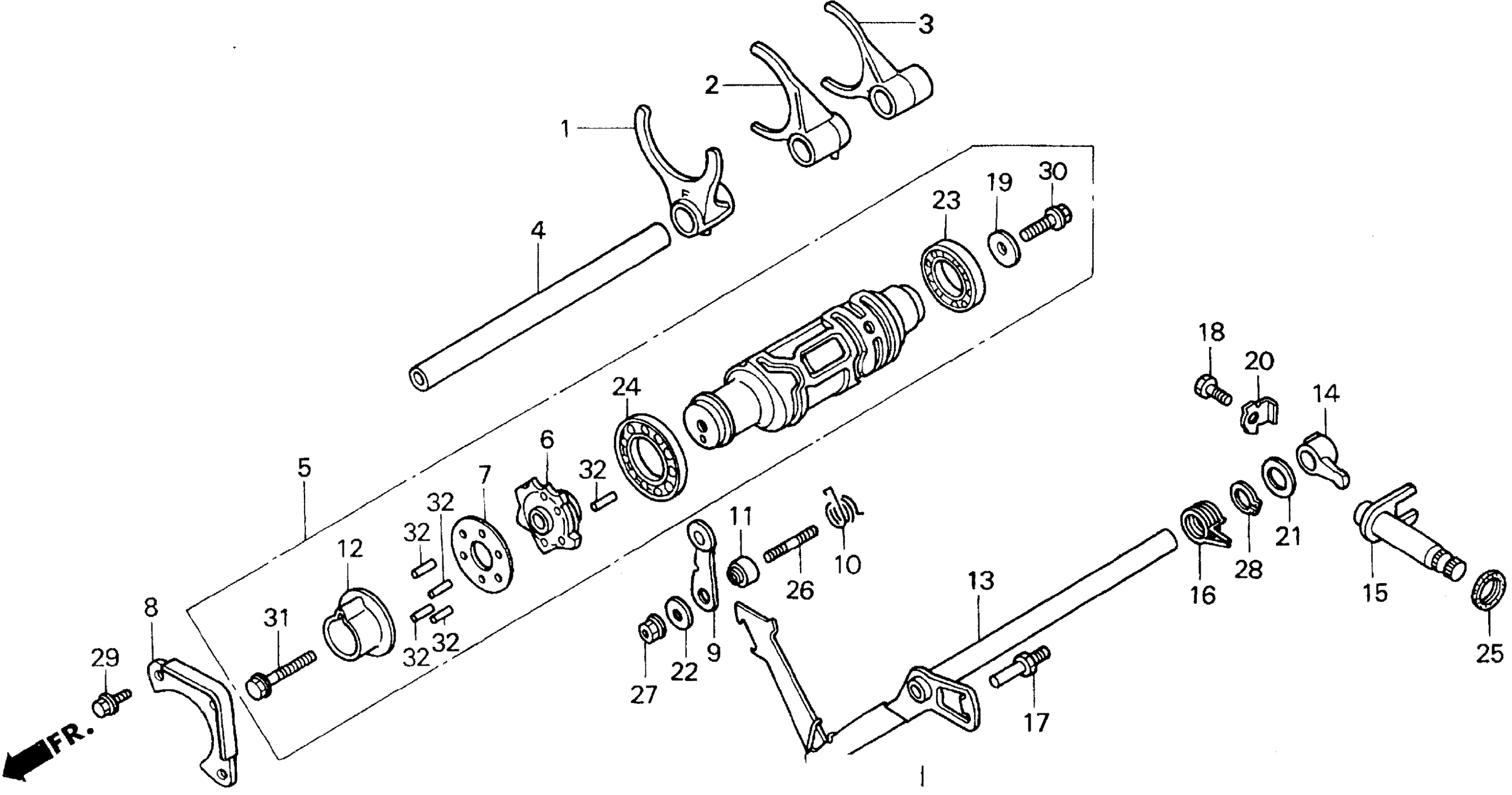 Honda GL1500CFA (01) VALKYRIE INTERSTATE, USA, VIN# 1HFSC410-1A200001 SHIFT DRUM + SHIFT FORK Diagram