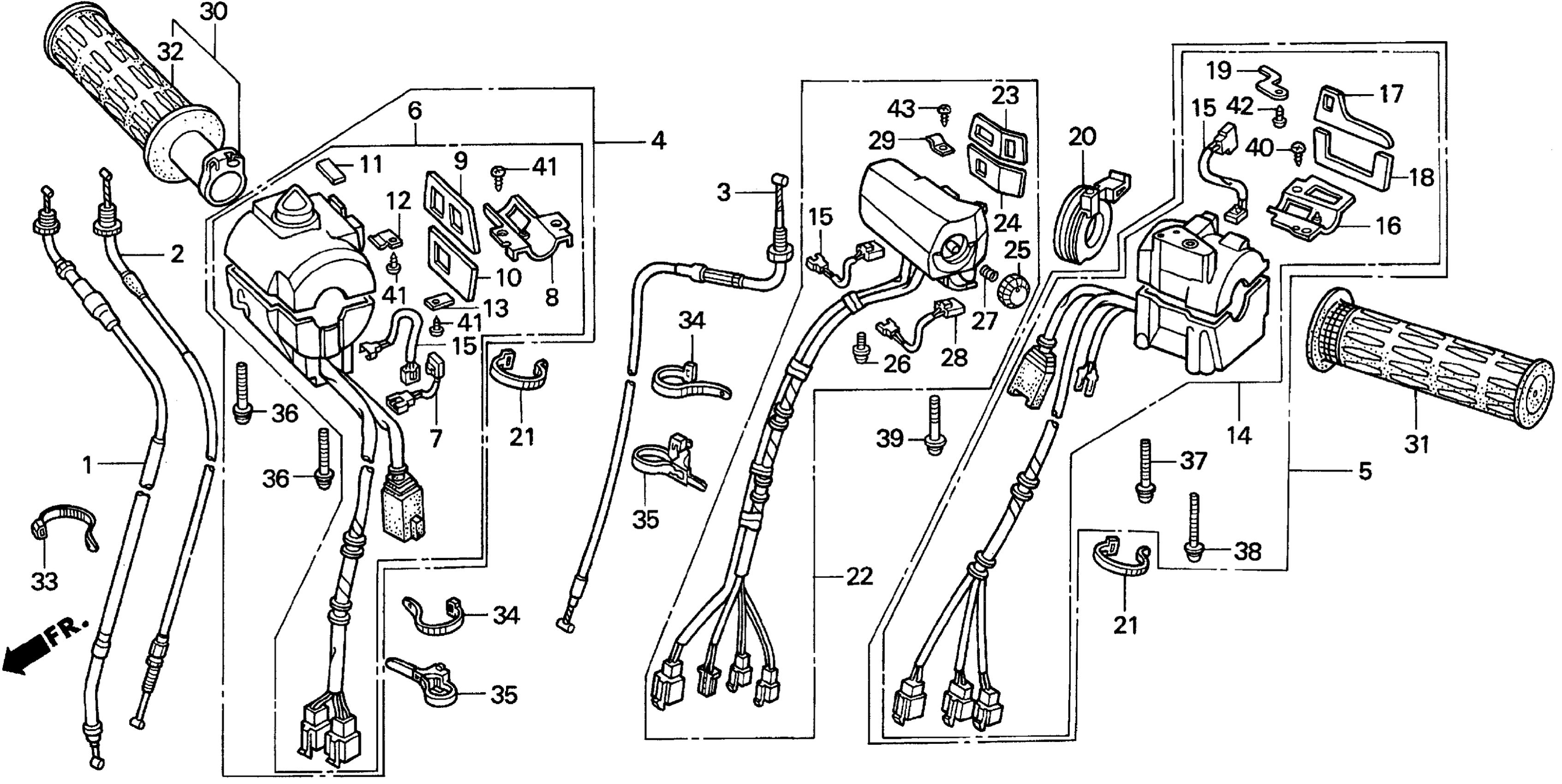 Honda GL1500SEA (96) GOLD WING SE, USA, VIN# 1HFSC223-TA800001 SE HANDLE + SWITCH + CABLES Diagram