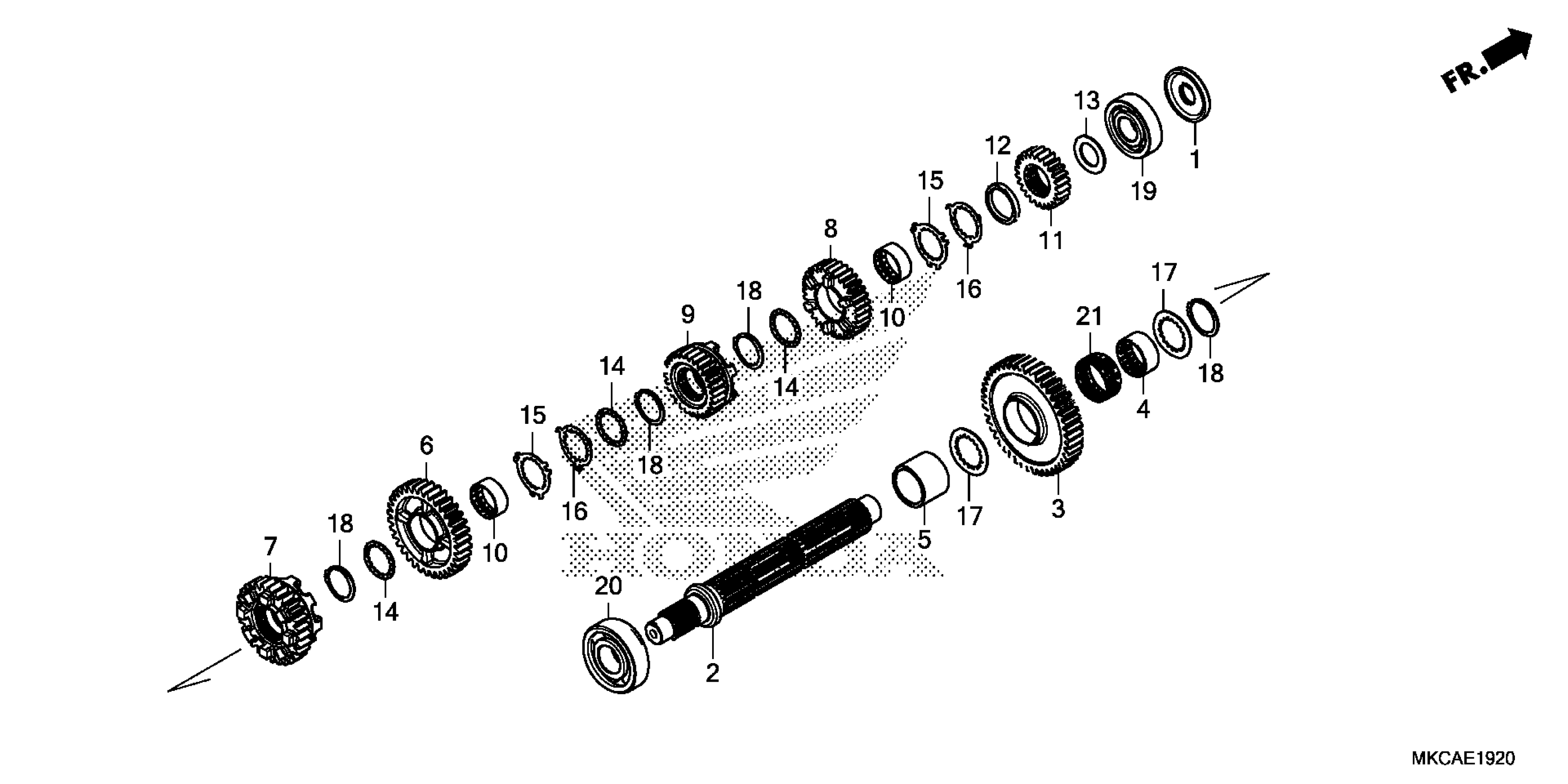 Honda GL18002AC (19) MOTORCYCLE, JPN, VIN# JH2SC790-KK100001 TRANSMISSION (COUNTERSHAFT) Diagram