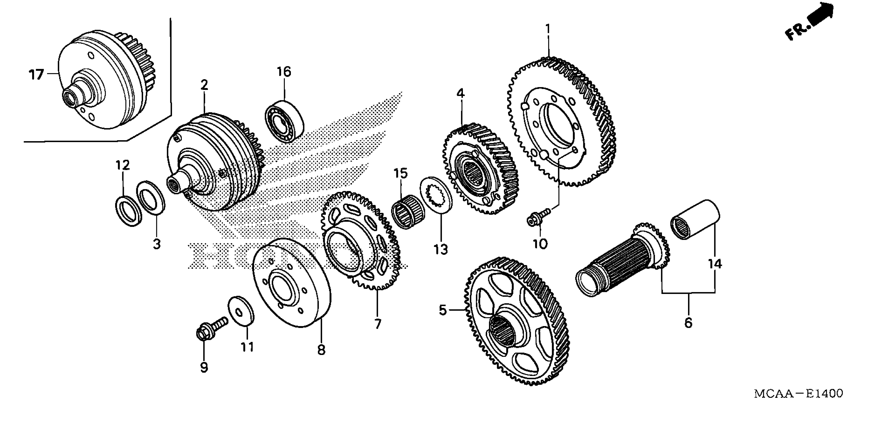 Honda GL18005A (09) GOLD WING, USA, VIN# 1HFSC47H-9A800001 TO 1HFSC47H-9A899999 PRIMARY DRIVE GEAR Diagram