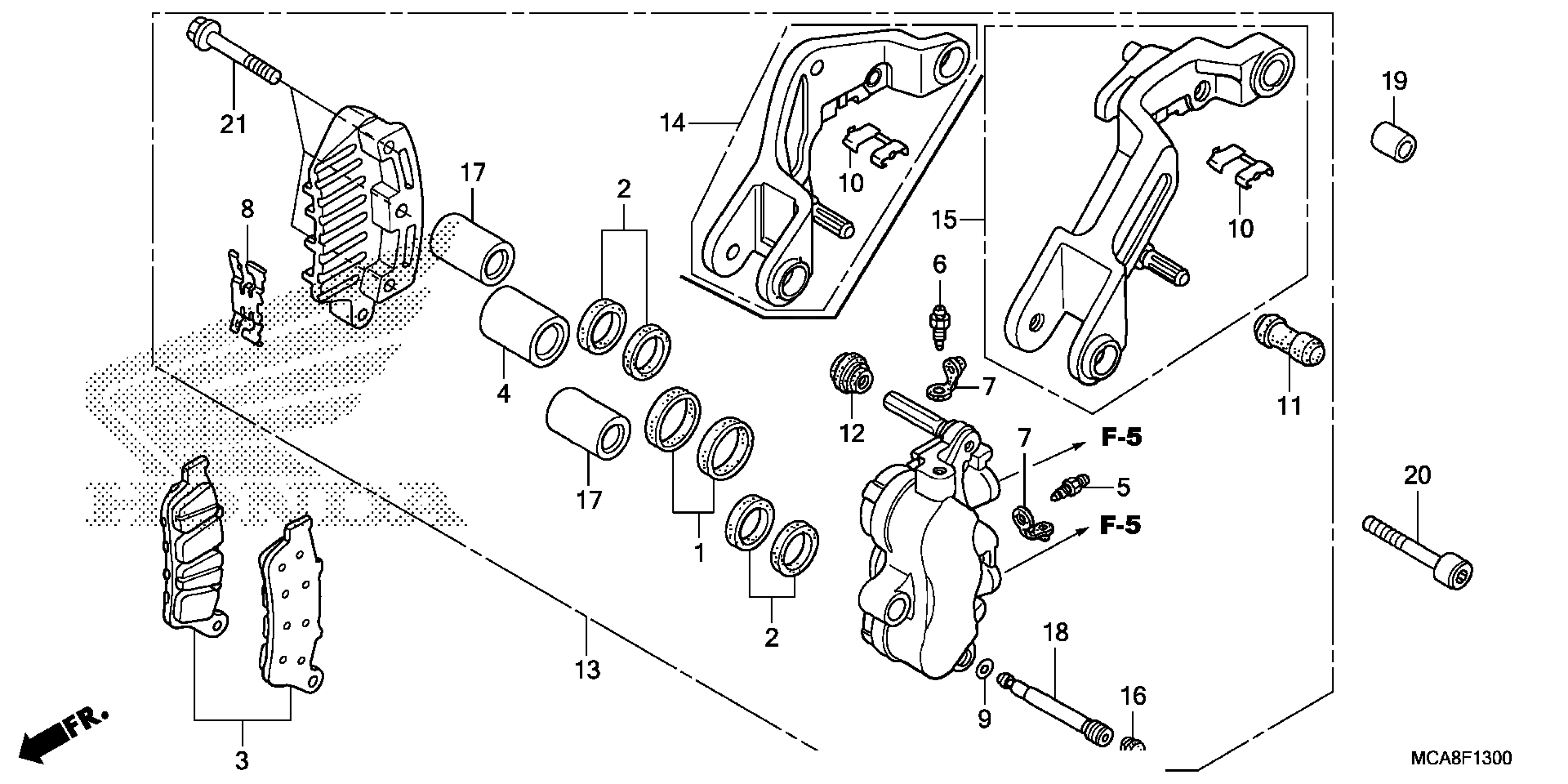 Honda GL18006YA (17) MOTORCYCLE, JPN, VIN# JH2SC68N-HK300001 LEFT FRONT BRAKE CALIPER Diagram