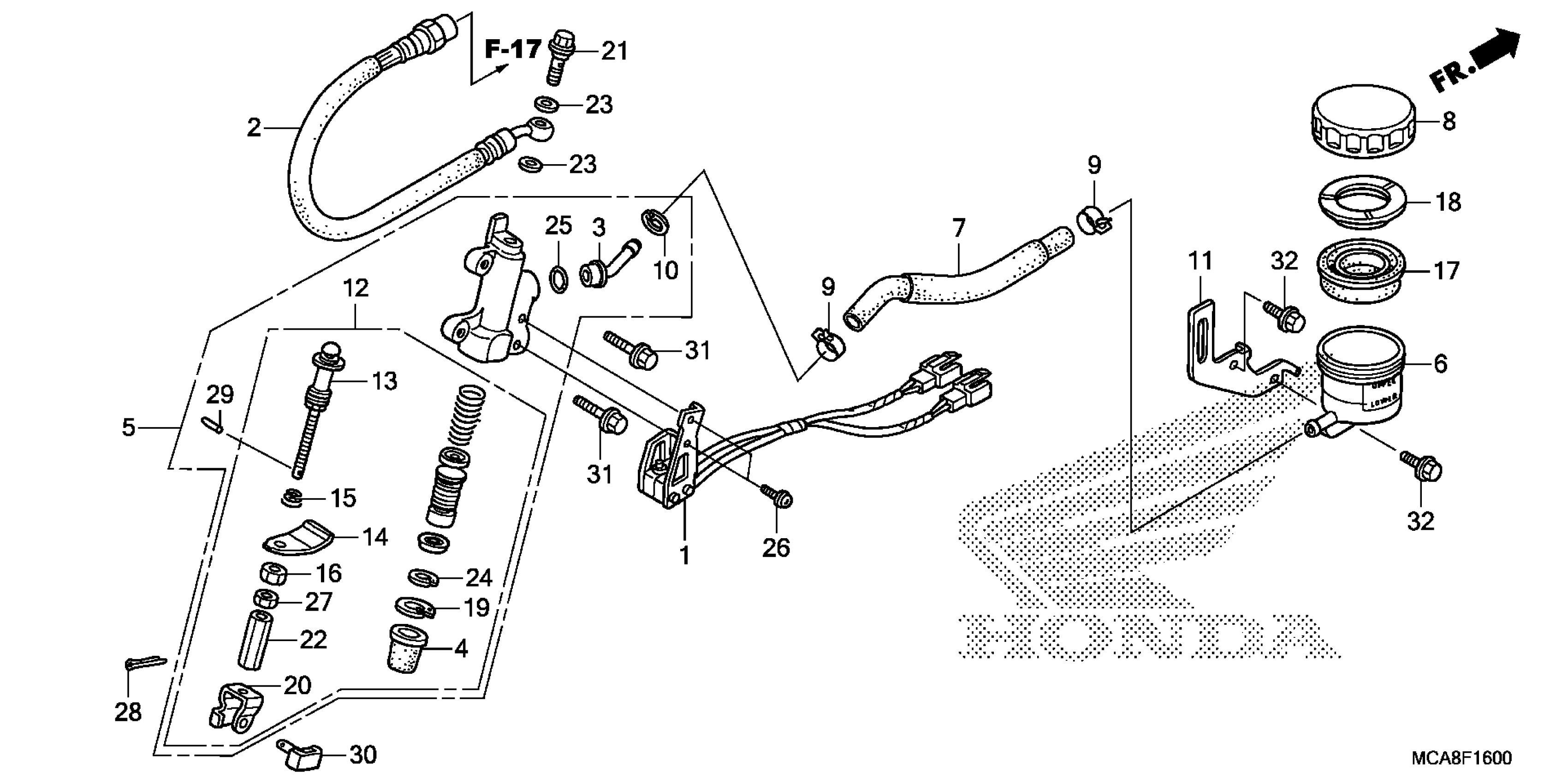 Honda GL18007AC (16) MOTORCYCLE, JPN, VIN# JH2SC68N-GK200001 TO JH2SC68N-GK299999 REAR BRAKE MASTER CYLINDER Diagram