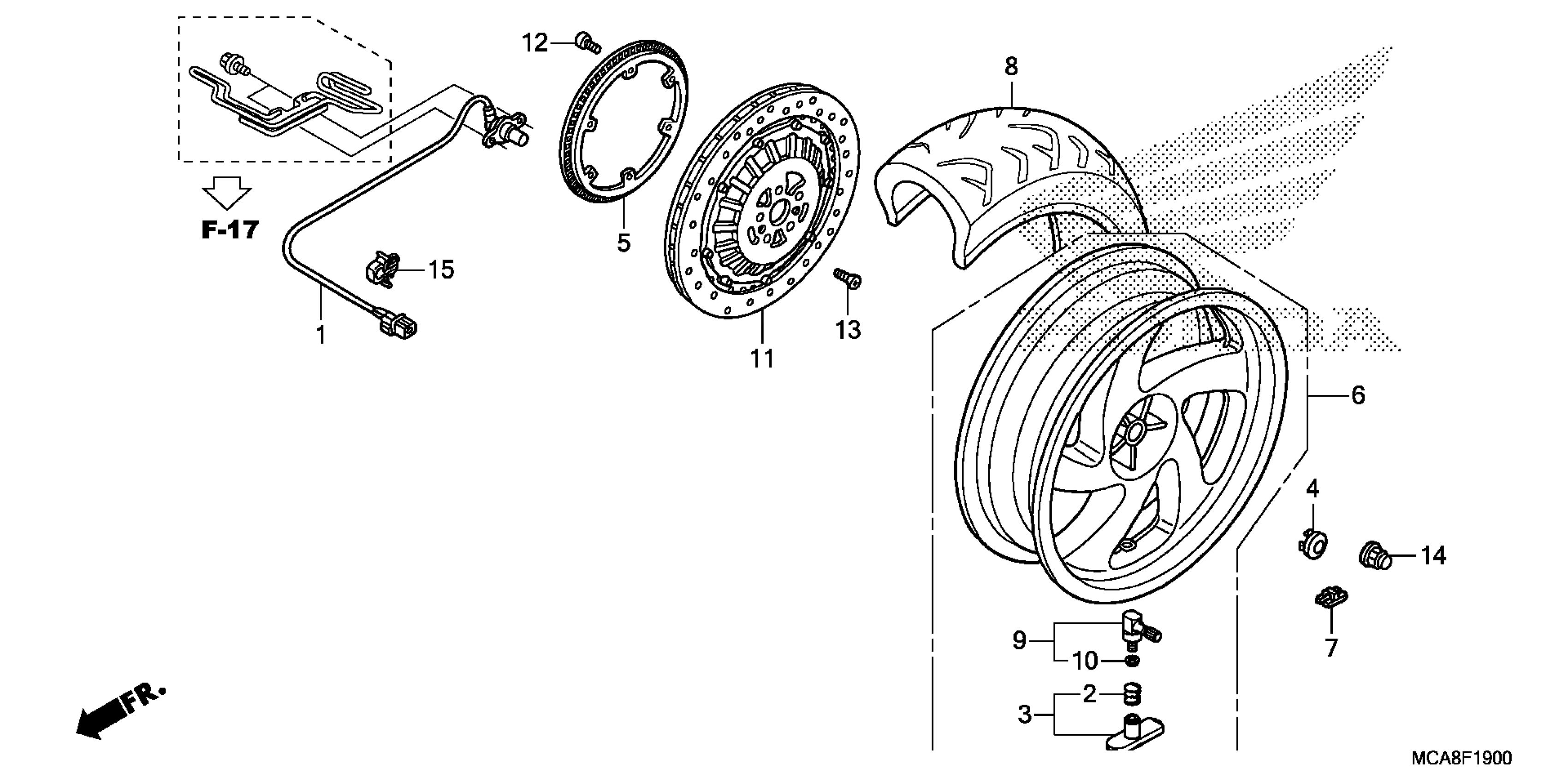 Honda GL18007AC (17) MOTORCYCLE, JPN, VIN# JH2SC68N-HK300001 REAR WHEEL Diagram