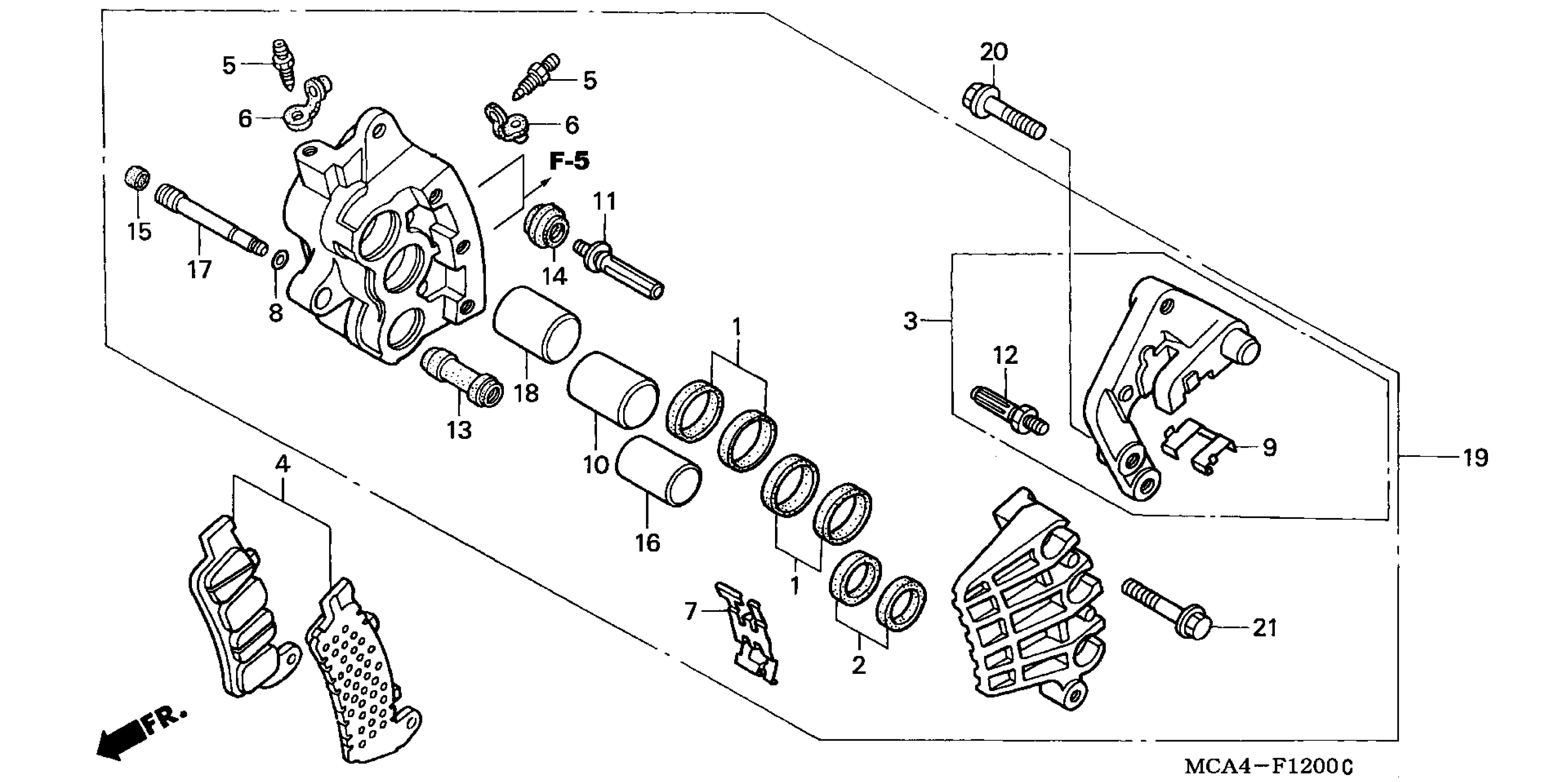 Honda GL1800A (04) GOLD WING, USA, VIN# 1HFSC470-4A300001 RIGHT FRONT BRAKE CALIPER (GL1800) Diagram