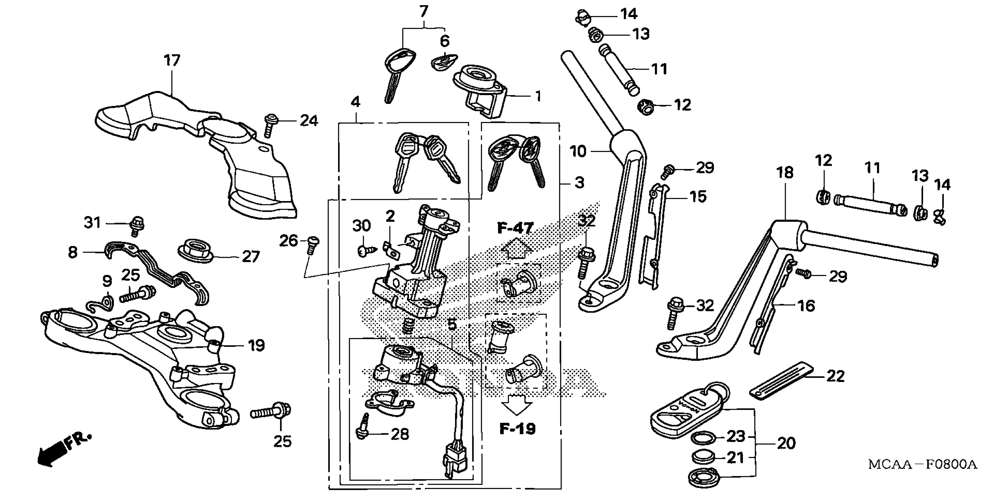 Honda GL1800AA (05) GOLD WING, USA, VIN# 1HFSC474-5A400001 TO 1HFSC474-5A499999 HANDLEBAR@TOP BRIDGE (GL1800/A'05) Diagram