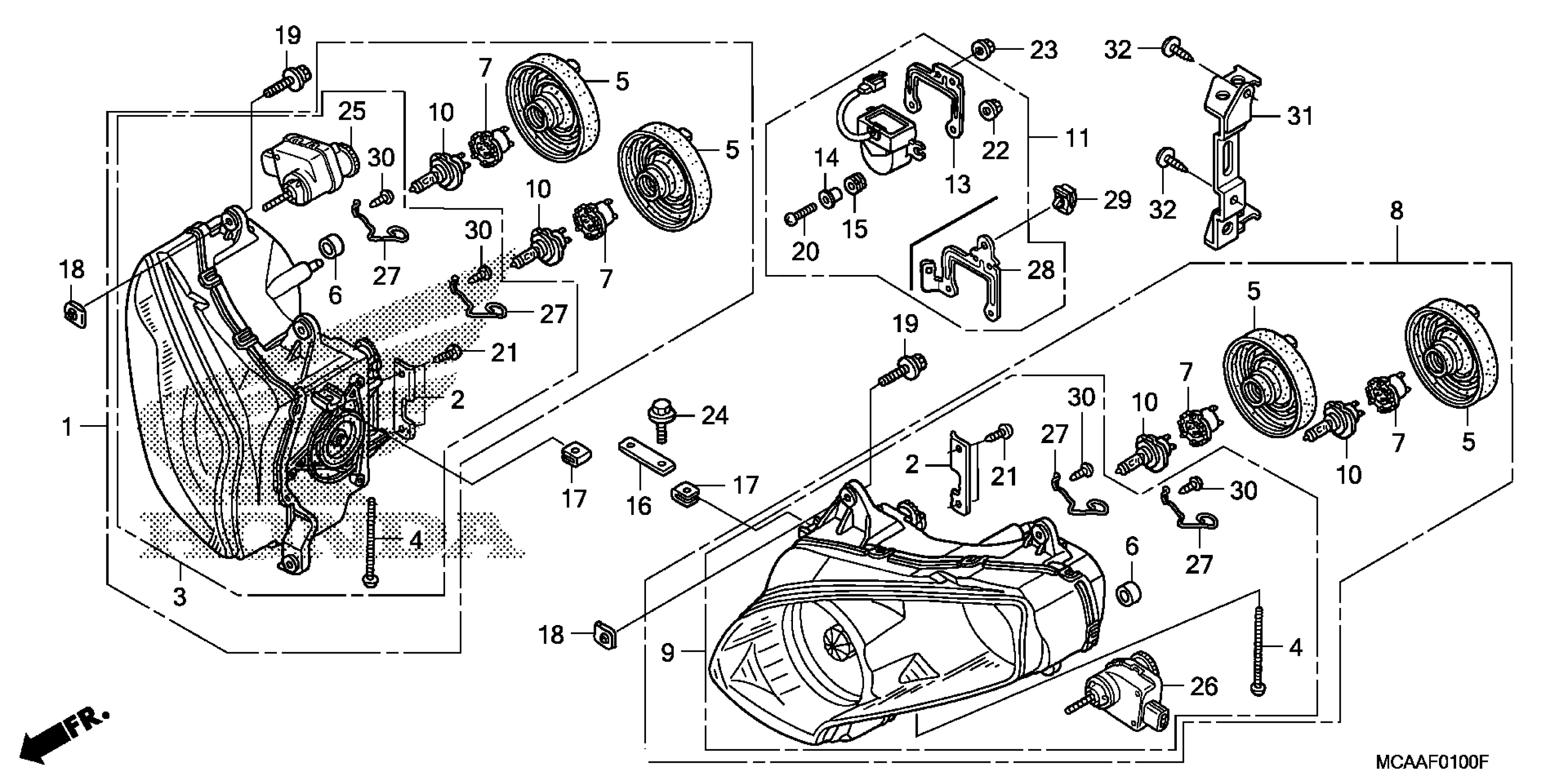 Honda GL1800AA (05) GOLD WING, USA, VIN# 1HFSC474-5A400001 TO 1HFSC474-5A499999 HEADLIGHT Diagram