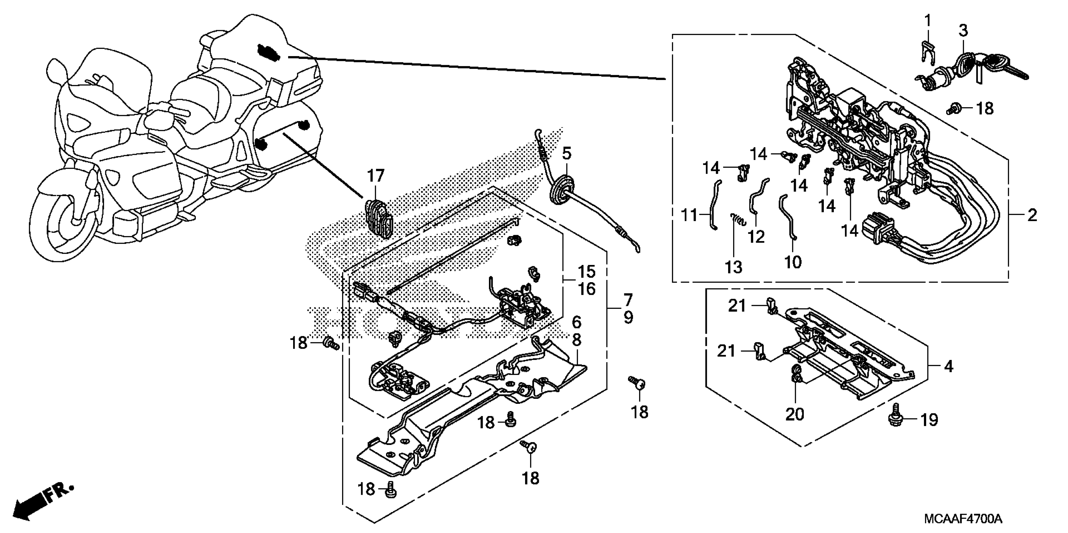 Honda GL1800AA (05) GOLD WING, USA, VIN# 1HFSC474-5A400001 TO 1HFSC474-5A499999 OPENER UNIT Diagram