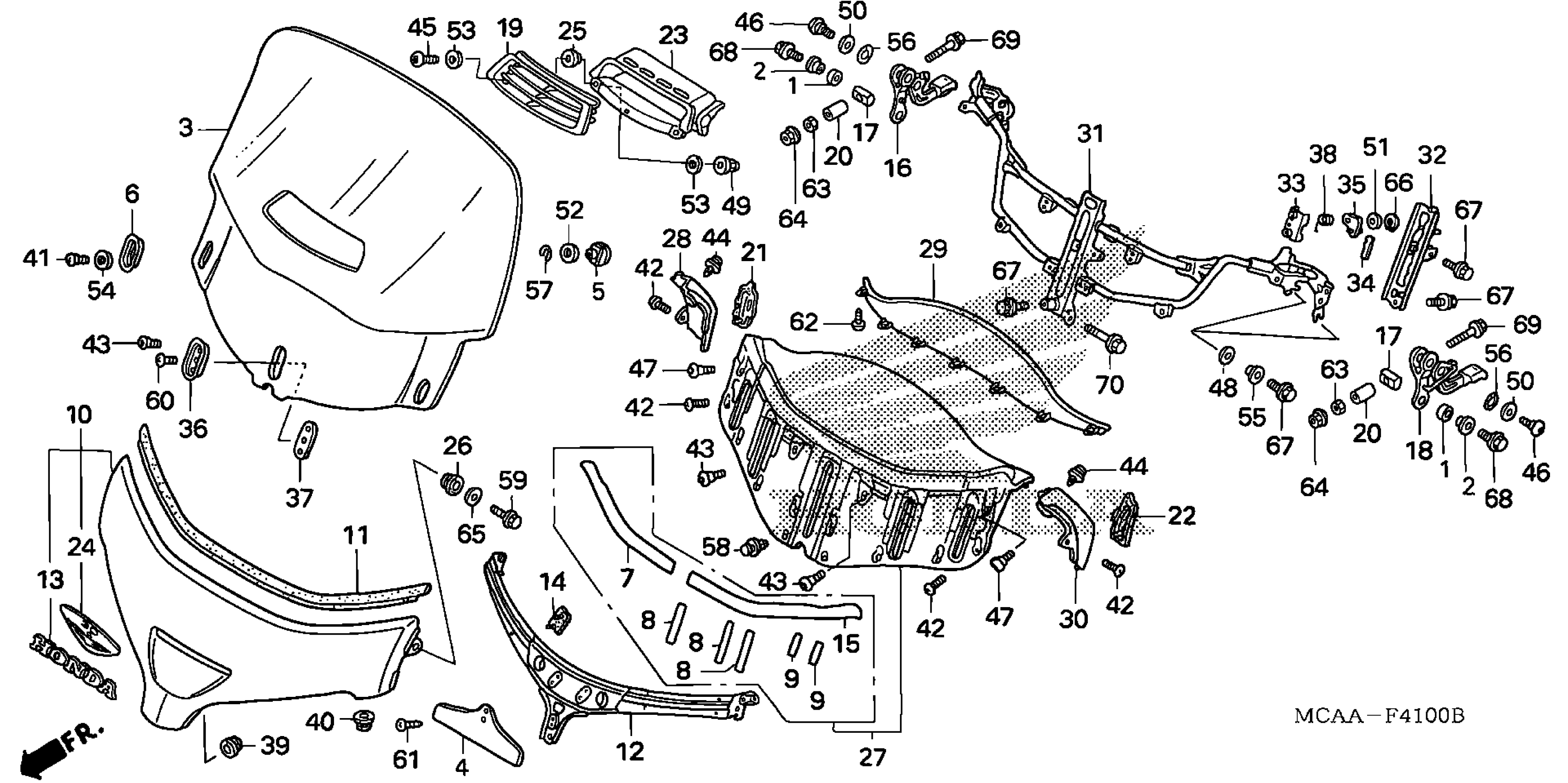 Honda GL1800AA (05) GOLD WING, USA, VIN# 1HFSC474-5A400001 TO 1HFSC474-5A499999 WINDSCREEN (GL1800/A'05) Diagram