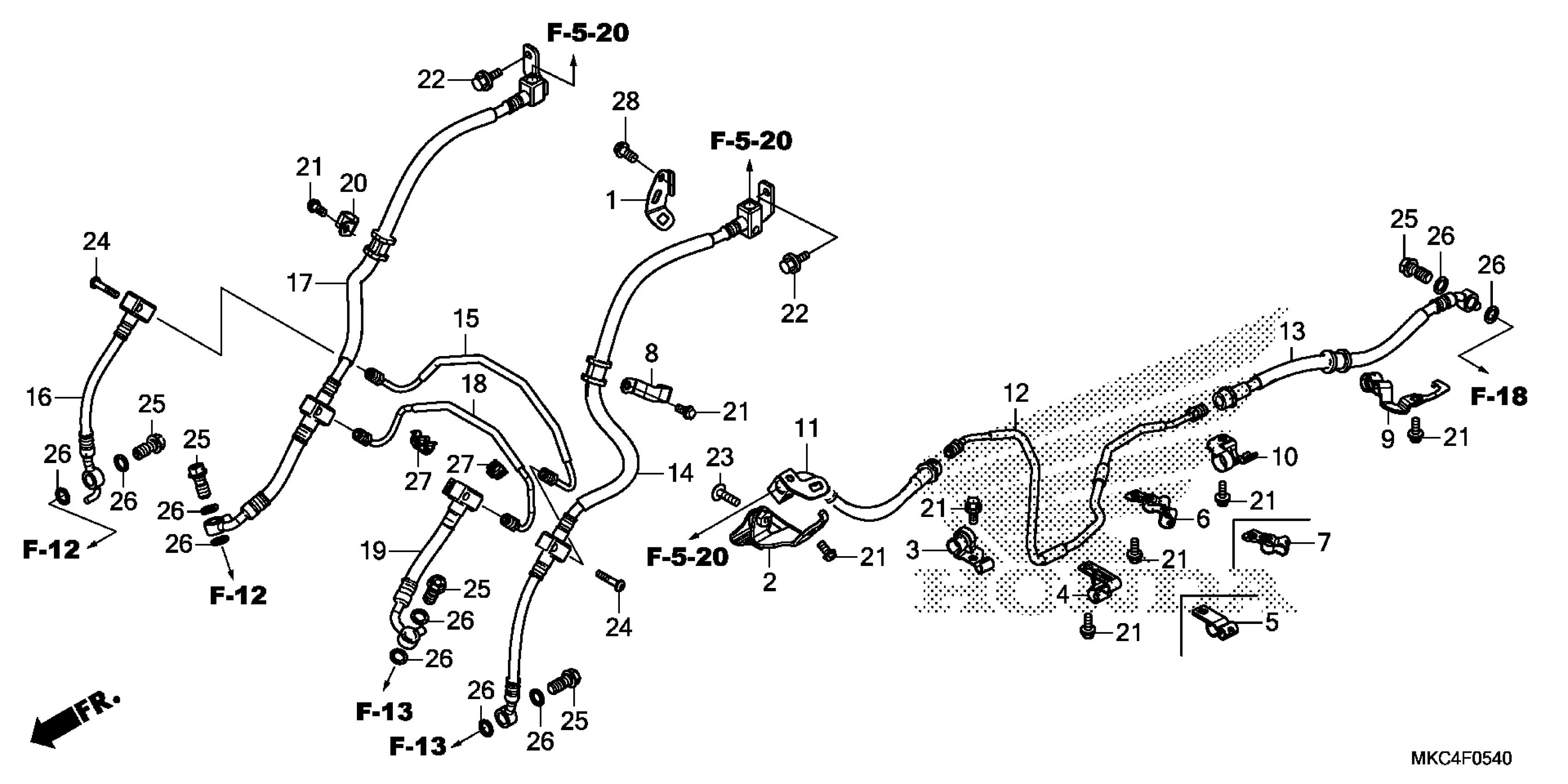Honda GL1800D2AC (18) MOTORCYCLE, JPN, VIN# JH2SC795-JK000001 BRAKE HOSE@BRAKE PIPE Diagram