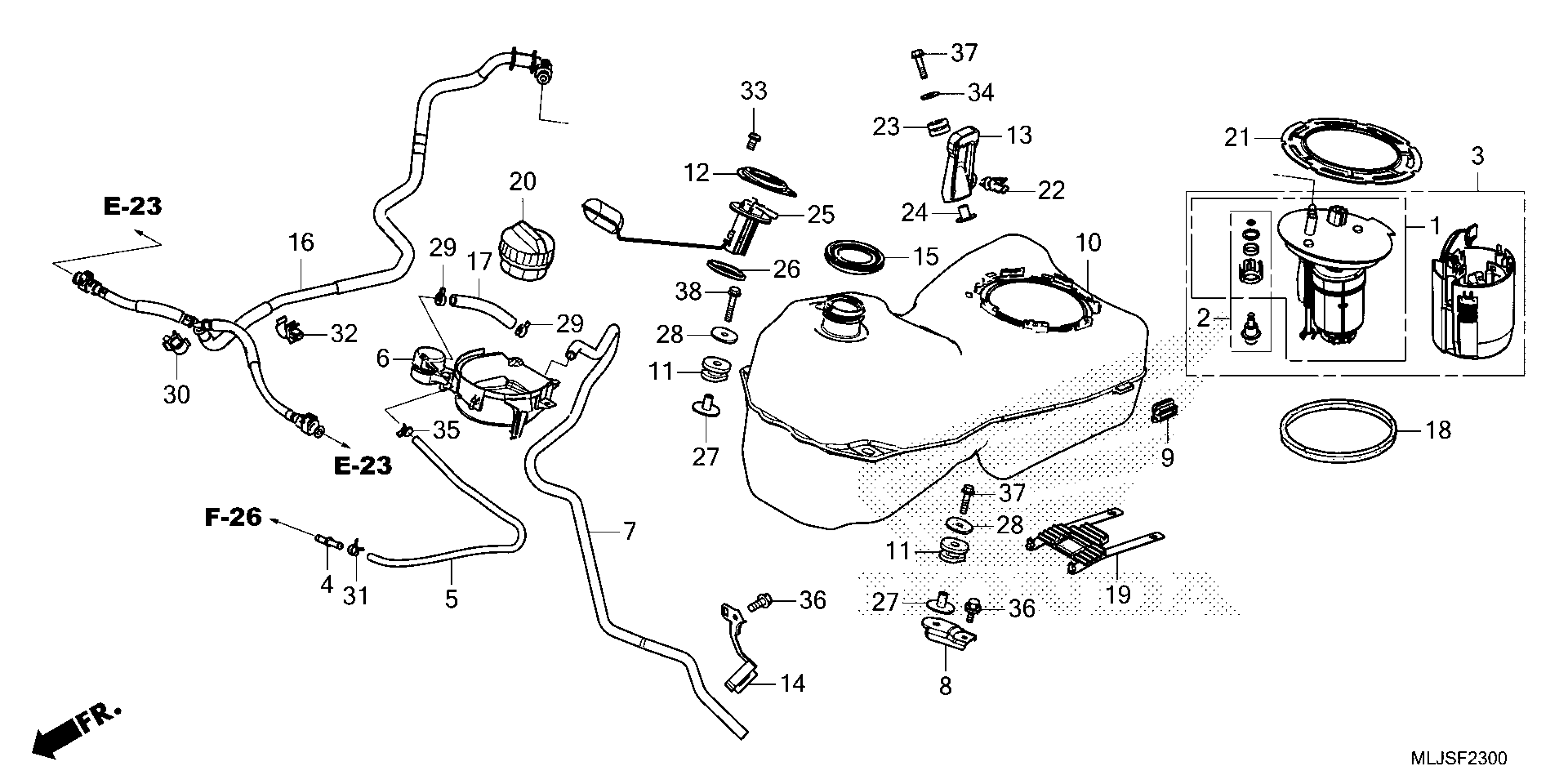 Honda GL1800D2AC (25) MOTORCYCLE, JPN, VIN# JH2SC795-SK700001 TO JH2SC795-SK799999 FUEL TANK Diagram