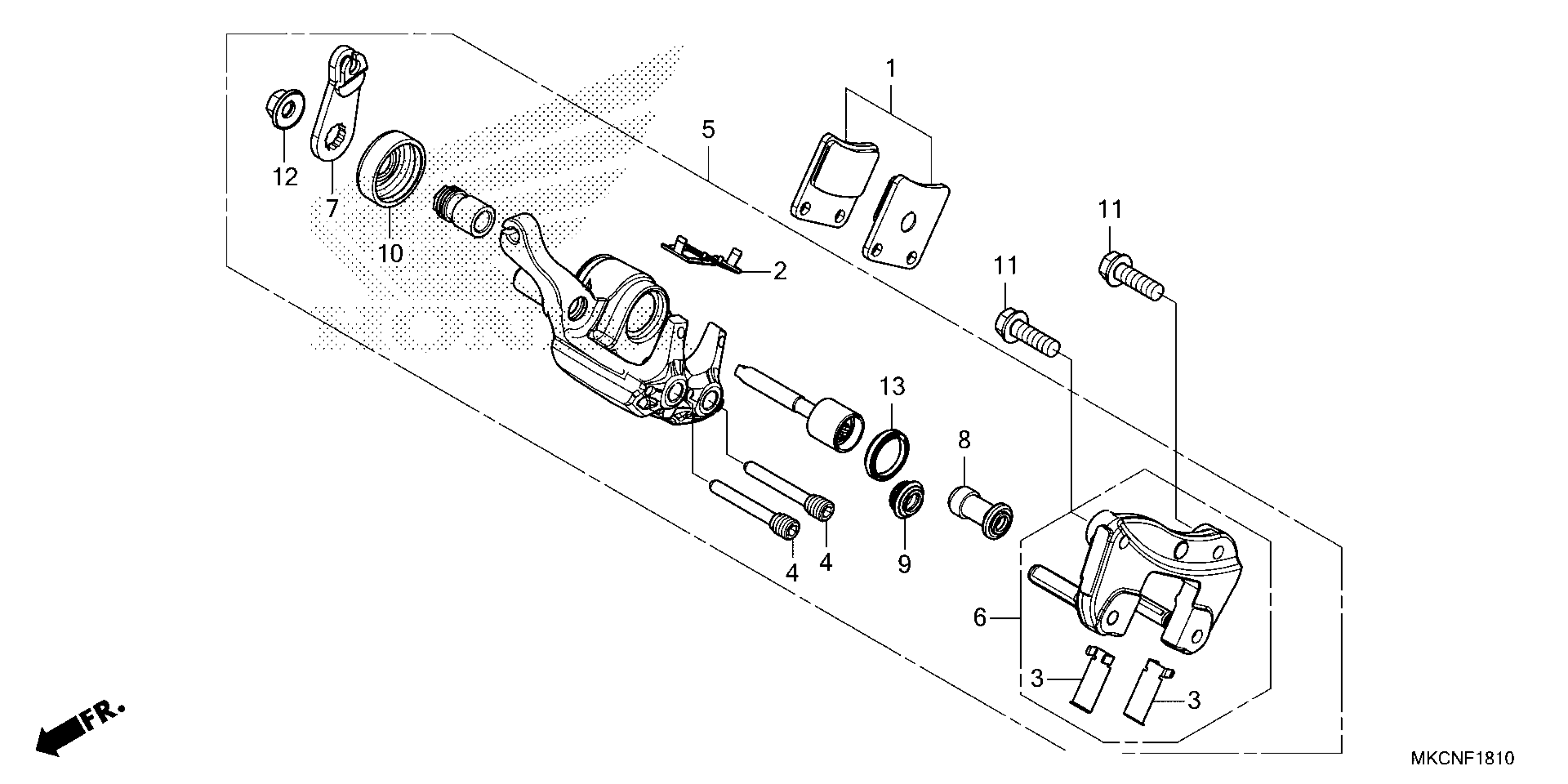 Honda GL1800D3AC (22) MOTORCYCLE, JPN, VIN# JH2SC795-NK400001 PARKING BRAKE CALIPER Diagram
