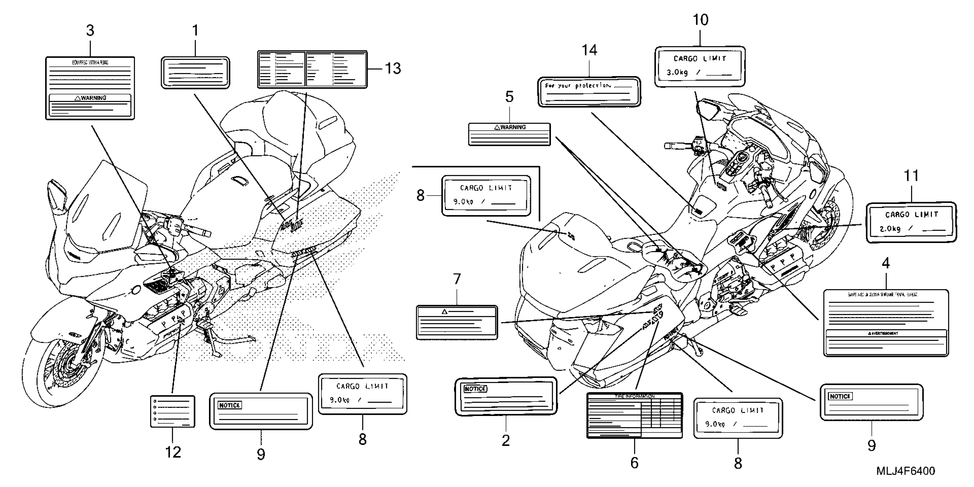 Honda GL1800D3AC (23) MOTORCYCLE, JPN, VIN# JH2SC795-PK500001 CAUTION LABEL Diagram